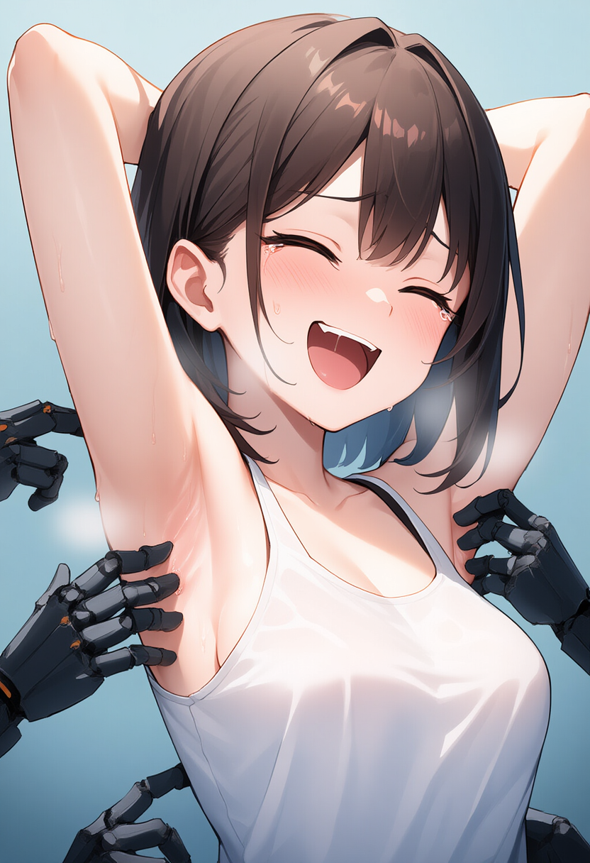 girl, medium breast, tank top, armpits, target#tickling, laugh with tears, closeup, focus on armpits