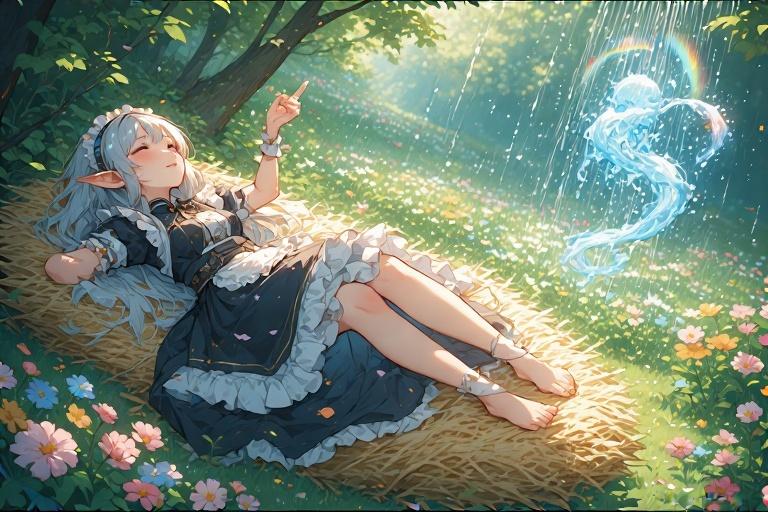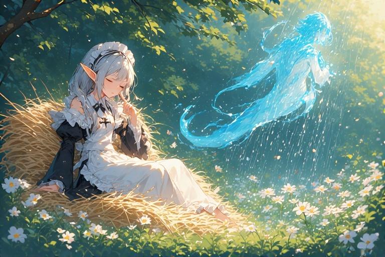 相棒の精霊に水やりをさせて自分は干し草のベッドでうたた寝