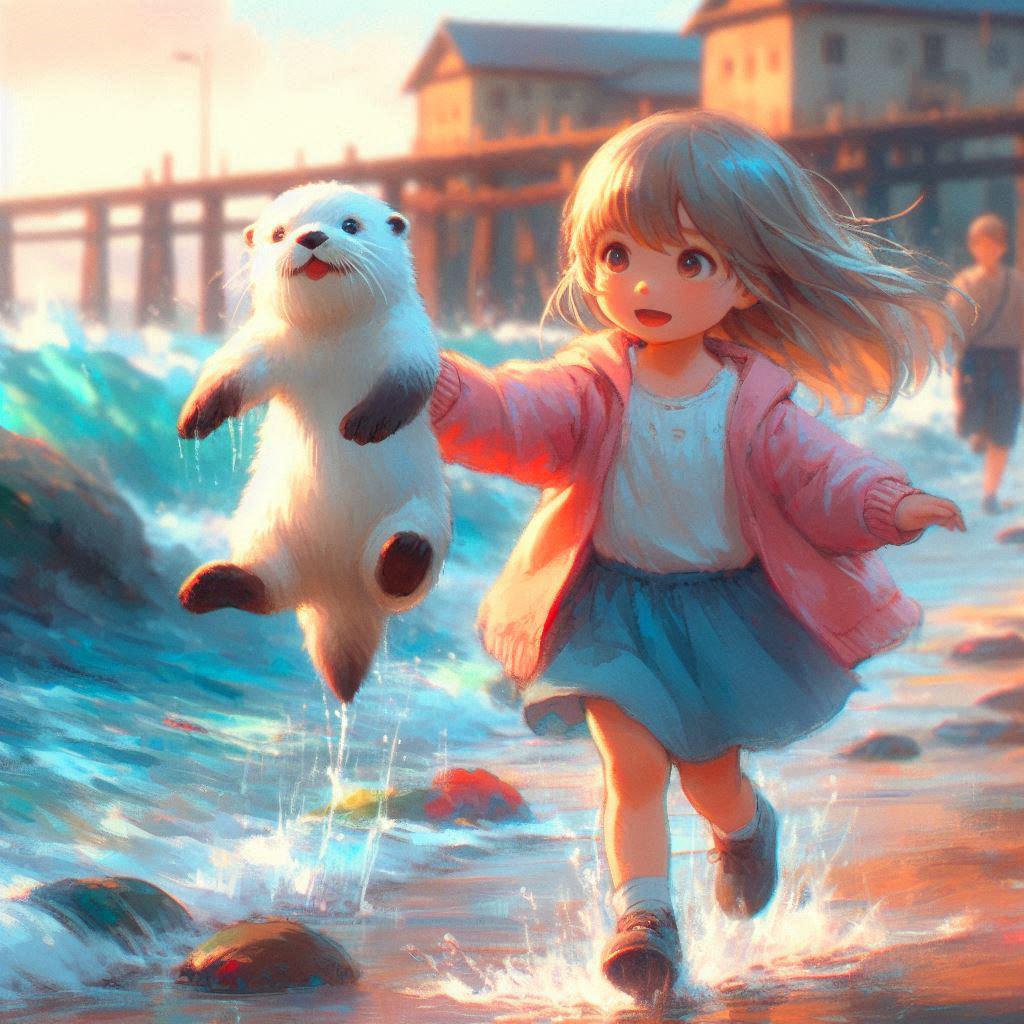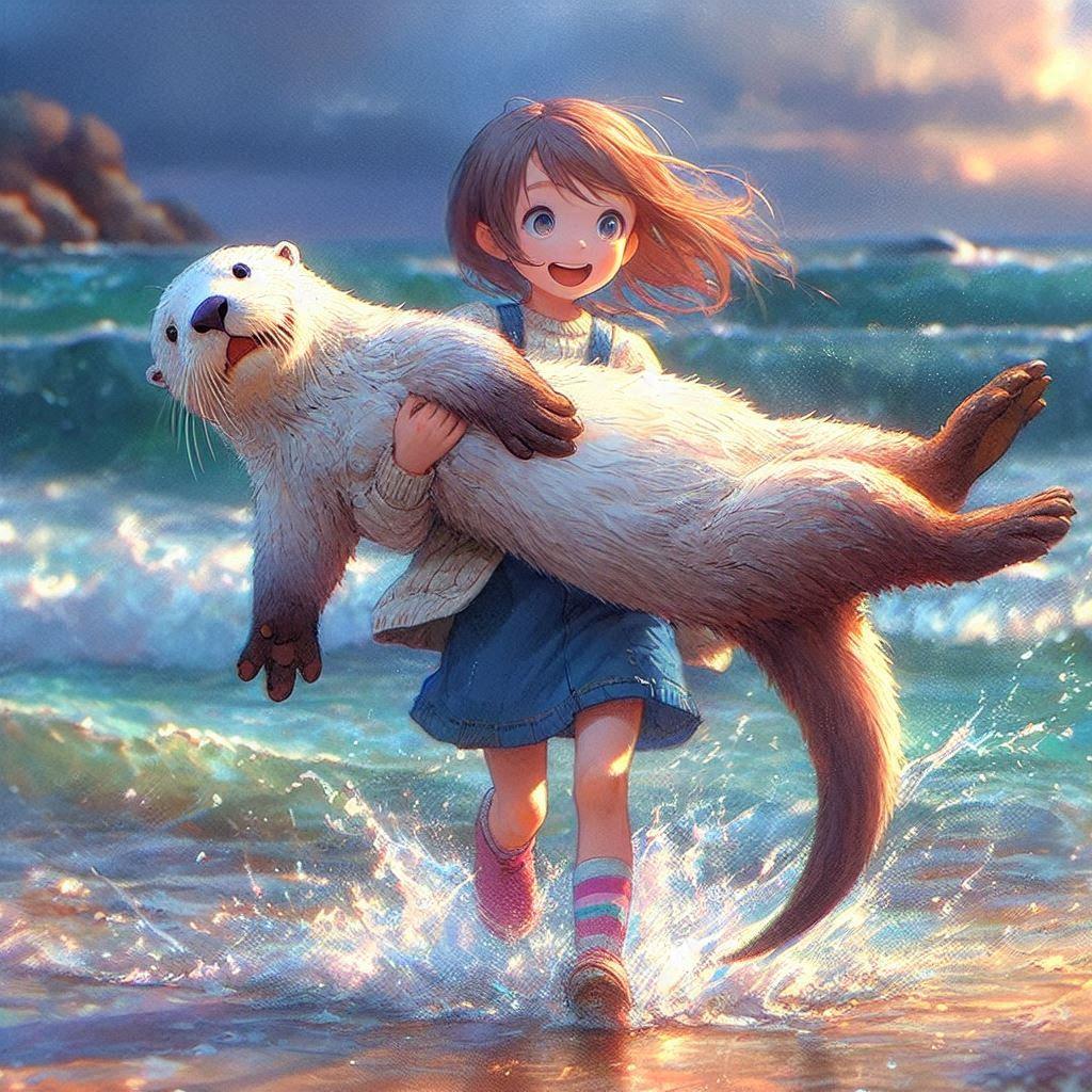 そして海で白いラッコを手掴みする少女。