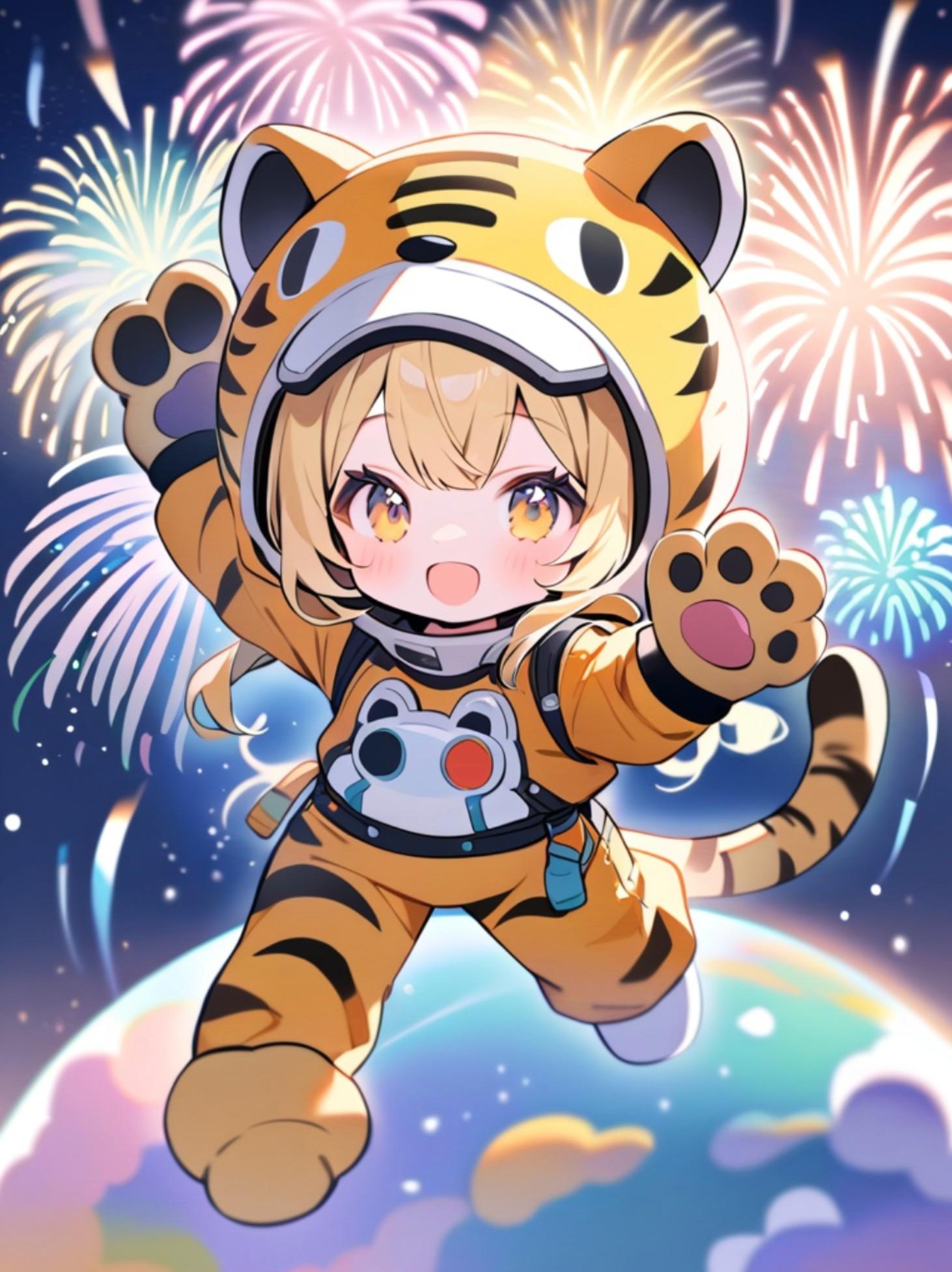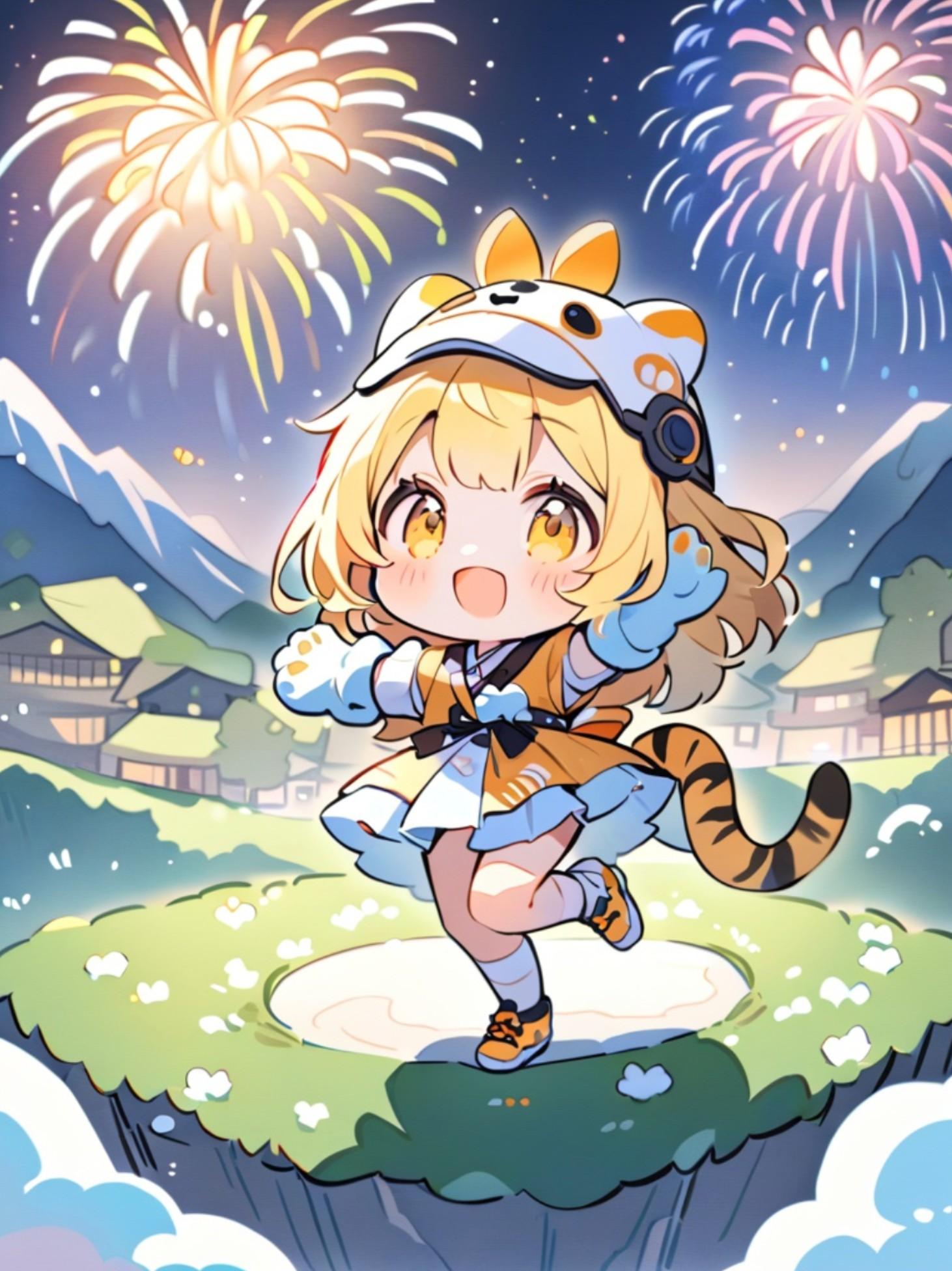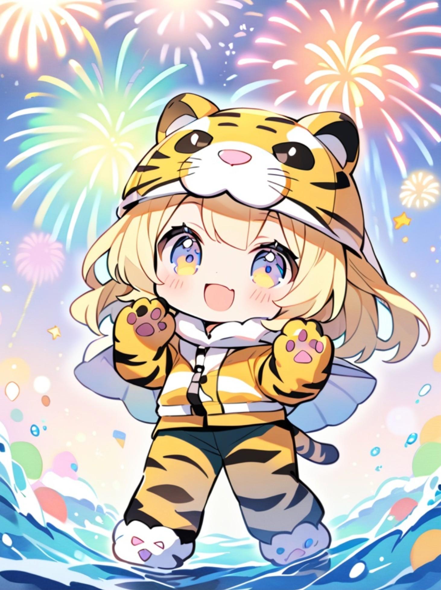 70,000いいねを花火を見ながら喜ぶ虎娘ちゃんです🐯