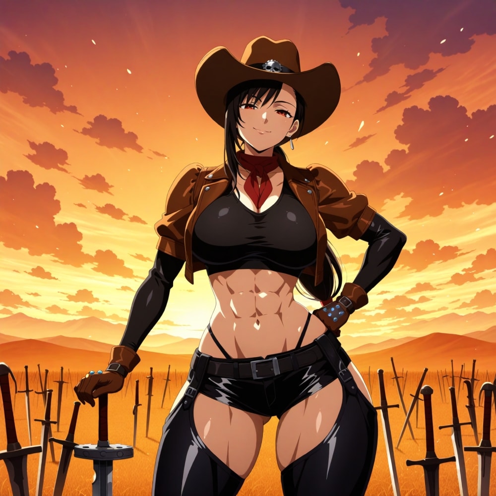 夕暮れのガンマンコスプレ人妻