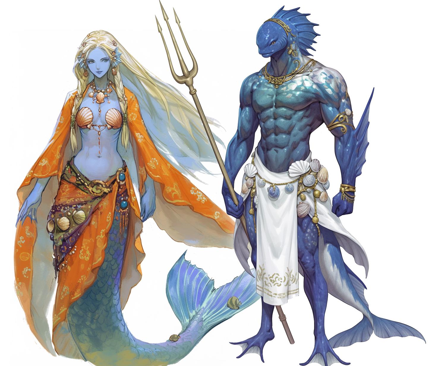 人魚はアイアスの基準だと獣人に分類されると書いてあったのでそのようにしていますが、異色肌だし男性は顔が魚なので亜人寄りなんですよね…