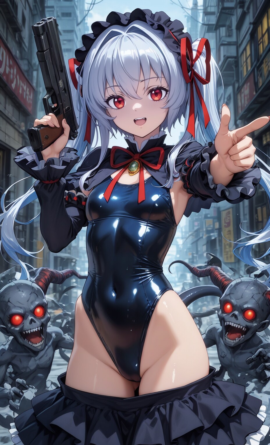 その為、戦闘アクションの邪魔になるゴスロリスカートは最初から穿かない・・更に姉達に付きあってゴスロリハンターっぽい服装を最低限しているが?このスタイルにこだわる姉妹達の心情も正直理解できないでいる💦。