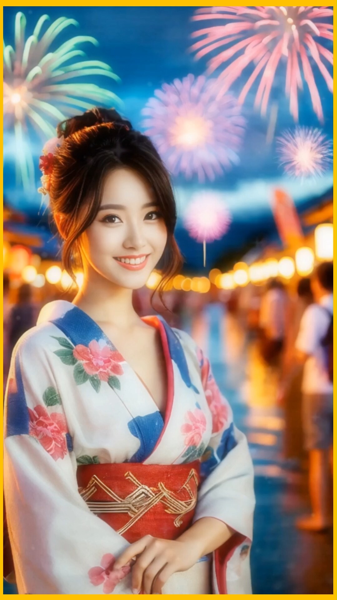 【浴衣花火】花火大会ポスター風にしてみた😄