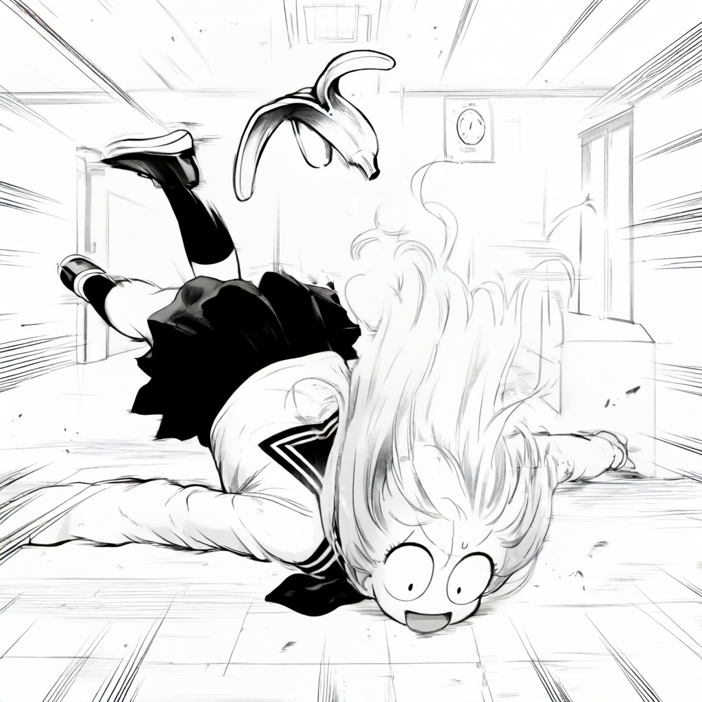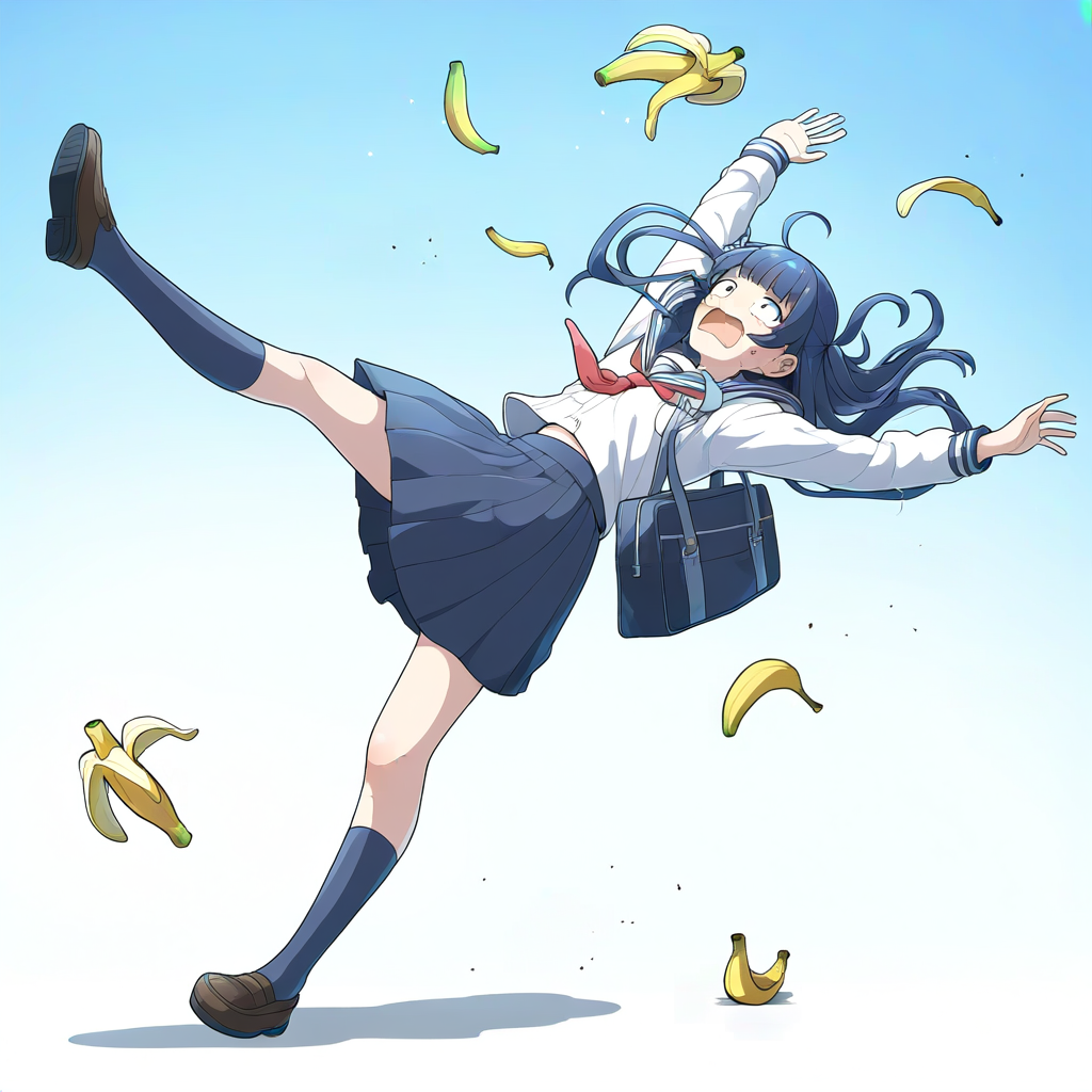 内容としては「バナナの皮にすべって転んでいる女子校生」だったのに、