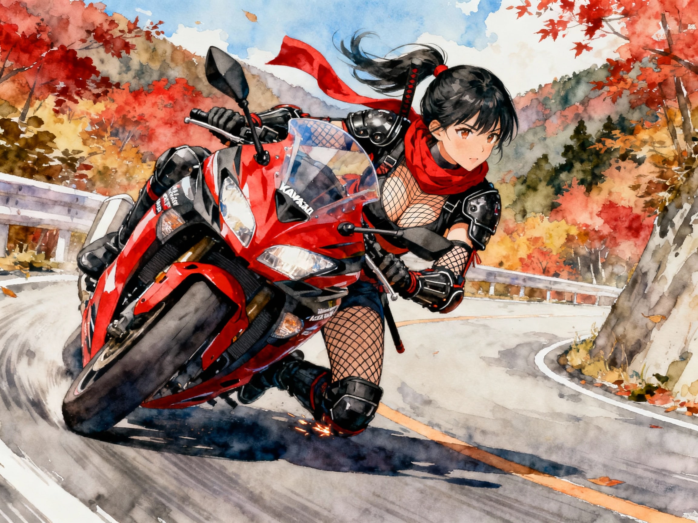 Ninjaに乗る忍者、秋のワインディングロードを芸術的なライディングで走るw