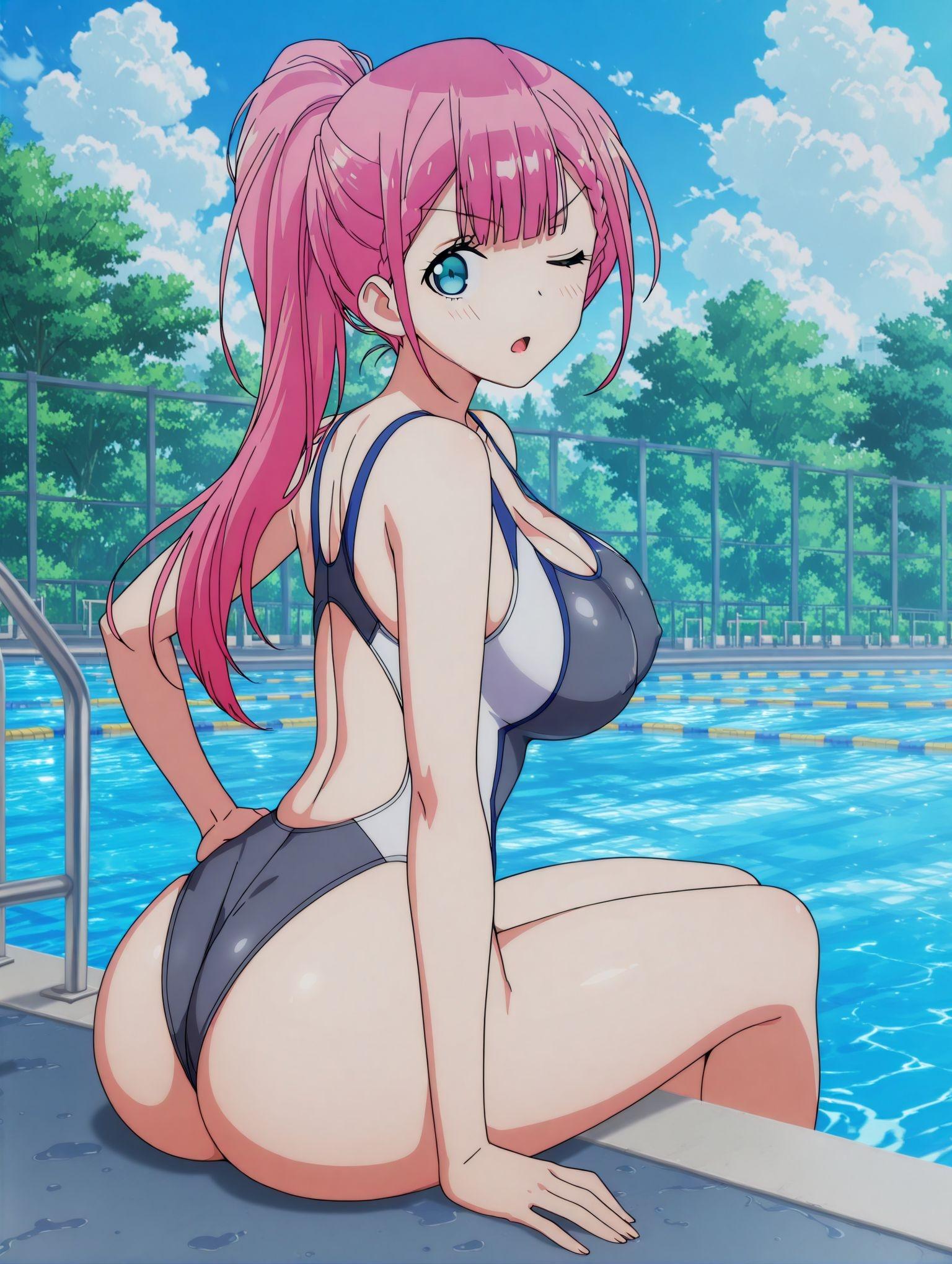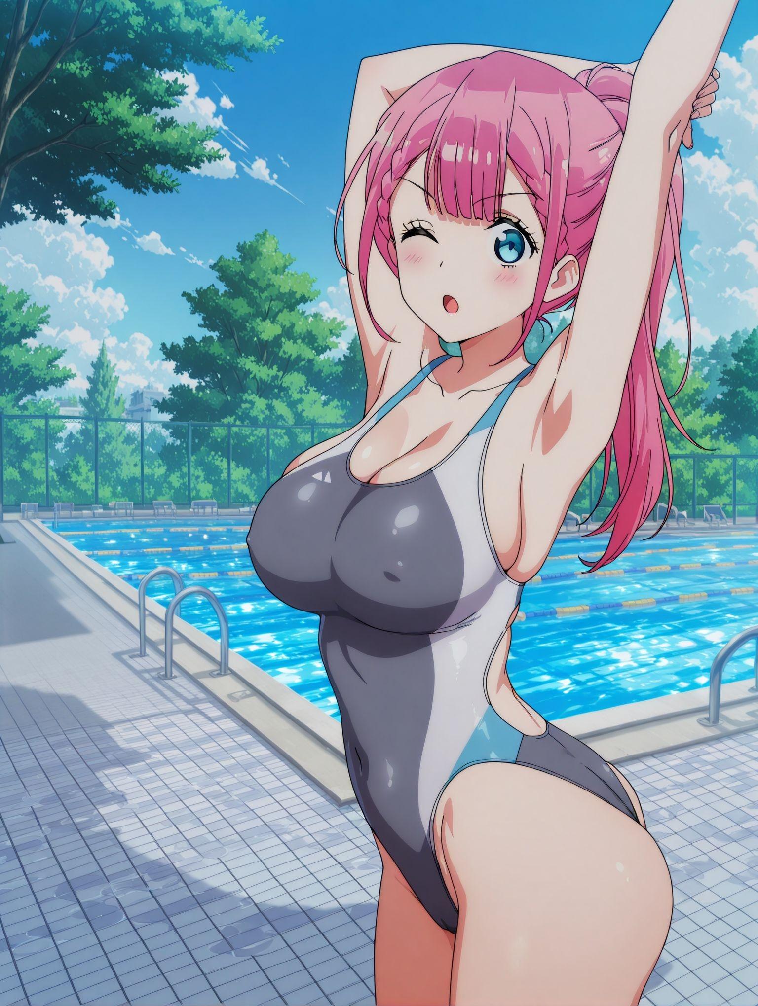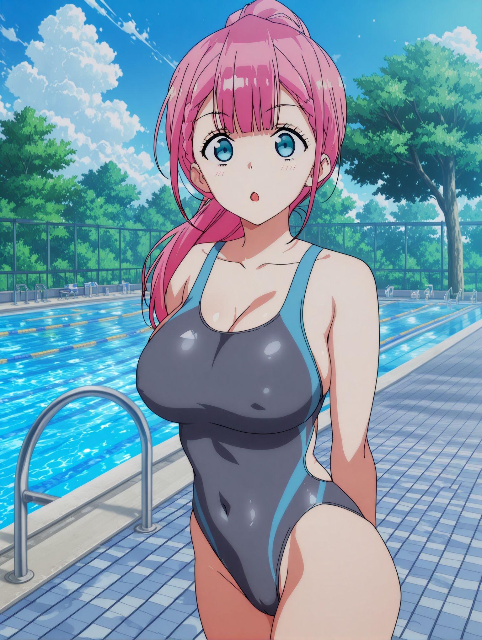 私の好みでハイレグにし、よりタイトめな水着にしています。