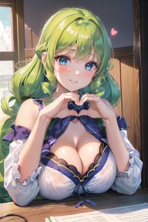 昨日手指のエラーを出しては眺めをした後でプロンプトやネガティブにある各種強調値をstep、scaleと共に微調整していて少しは強度のある手と5指(髪に巻き込まれたり伸びたりしにくい)になってきたかも? と今朝試しに生成してみたheart handsです。