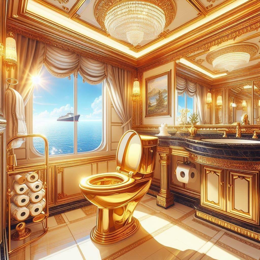 9、船室3。ロイヤルスイートの個室黄金トイレ。金ぴかです。