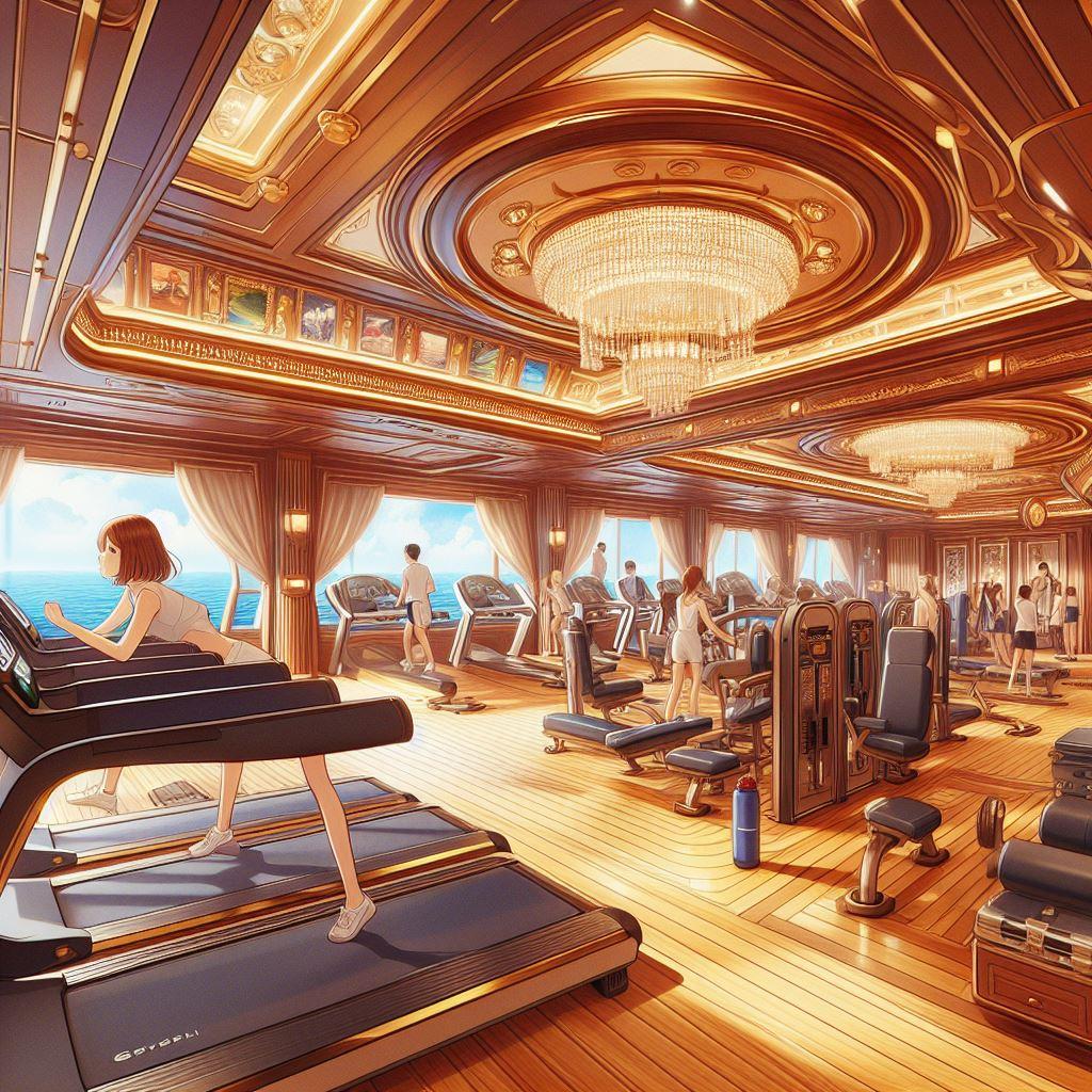 4、船内トレーニングルーム。フィットネス等。多数のスポーツ器具及び設備完備。