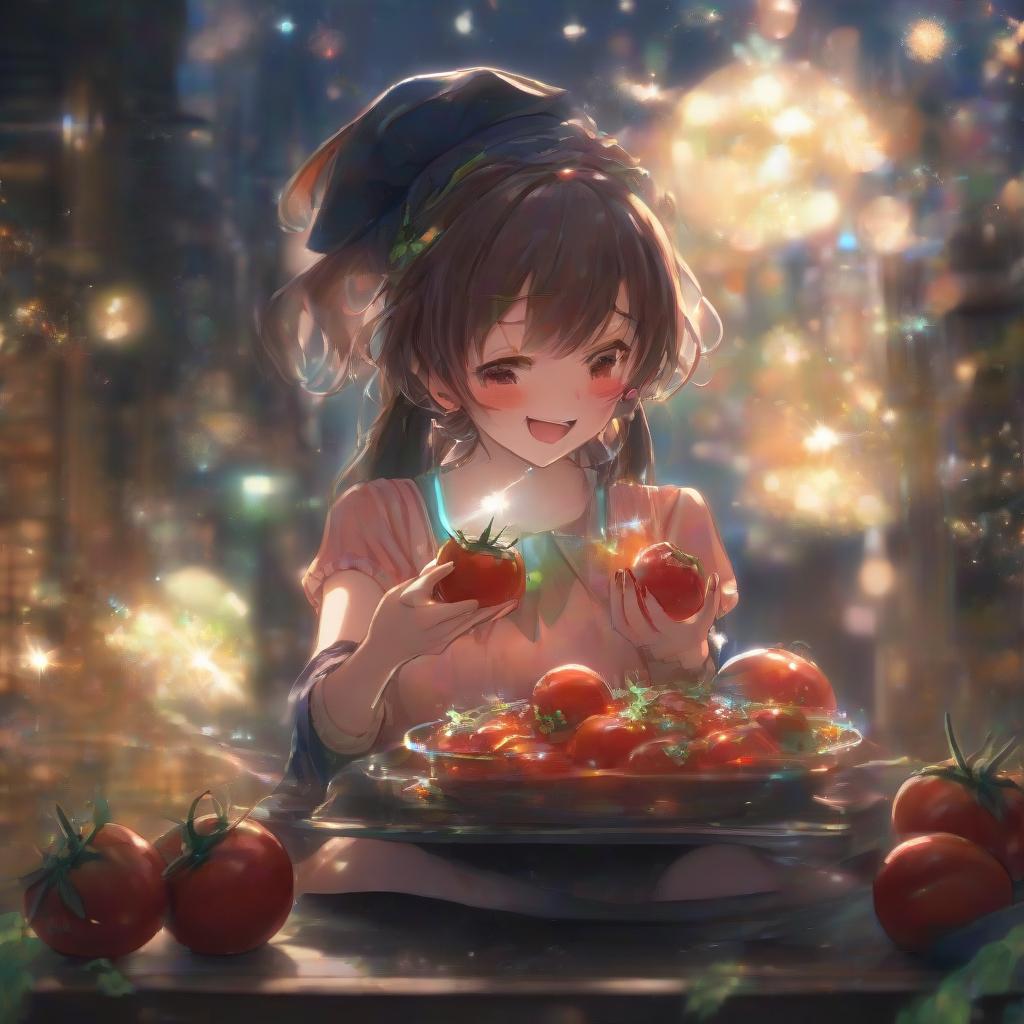 なります。あつめさんはトマトを宙に浮かせてキラキラ