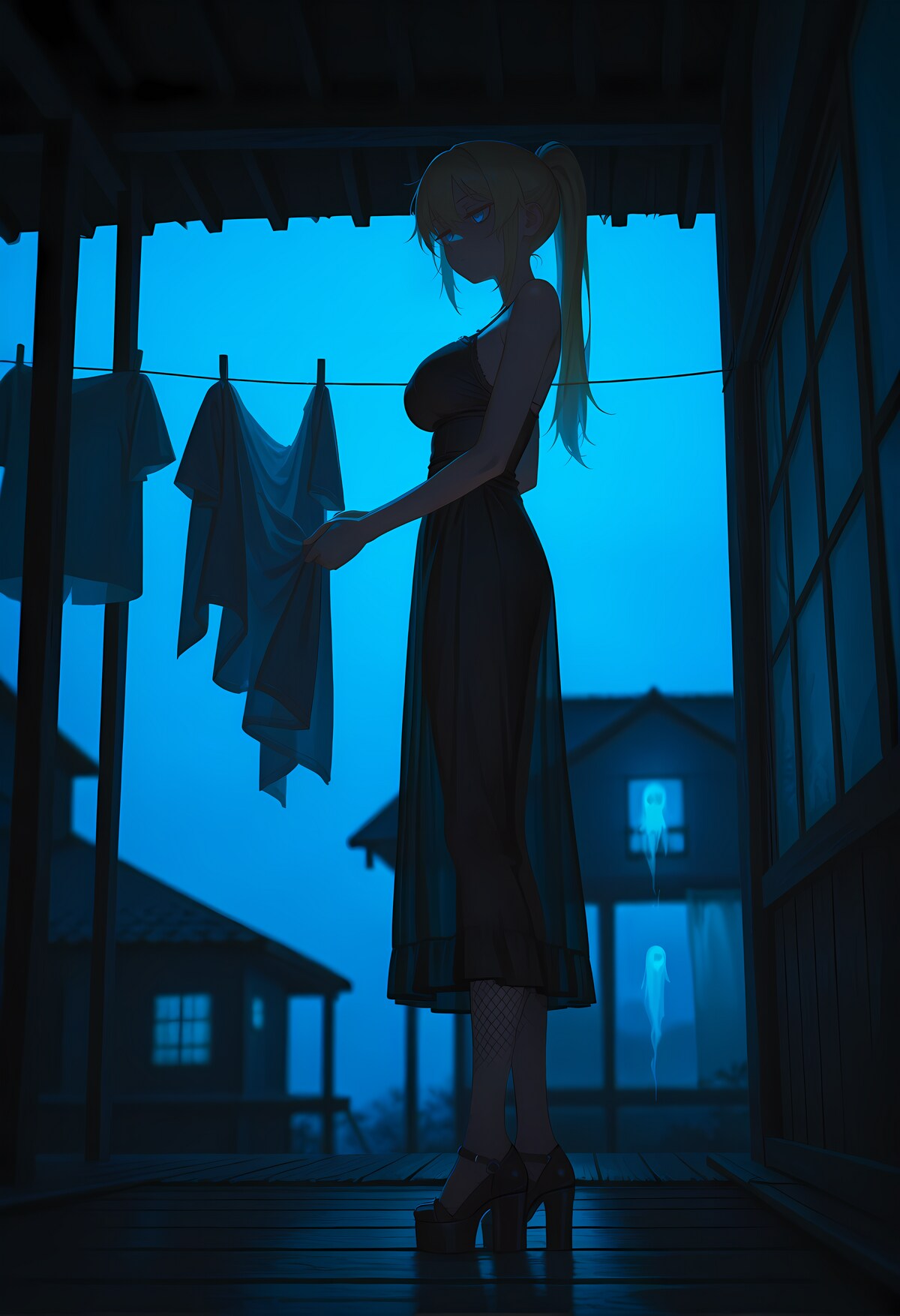 1,2枚目は以前投稿した、田舎で洗濯物を干していた時のプロンプトが残っていてなんか面白かったのでサムネにしました。
