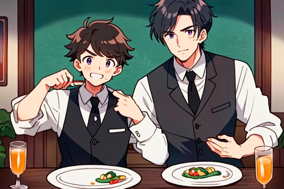 皿お題、今回は黒髪短髪男性どうしょうかな?と悩みましたが、やっぱり黒髪短髪男性で見たかったので、黒髪短髪男性でも生成してみました!!期待通り、執事&ウェイターな黒髪短髪男性が見れて良かったです!!皿は白多めになりました。