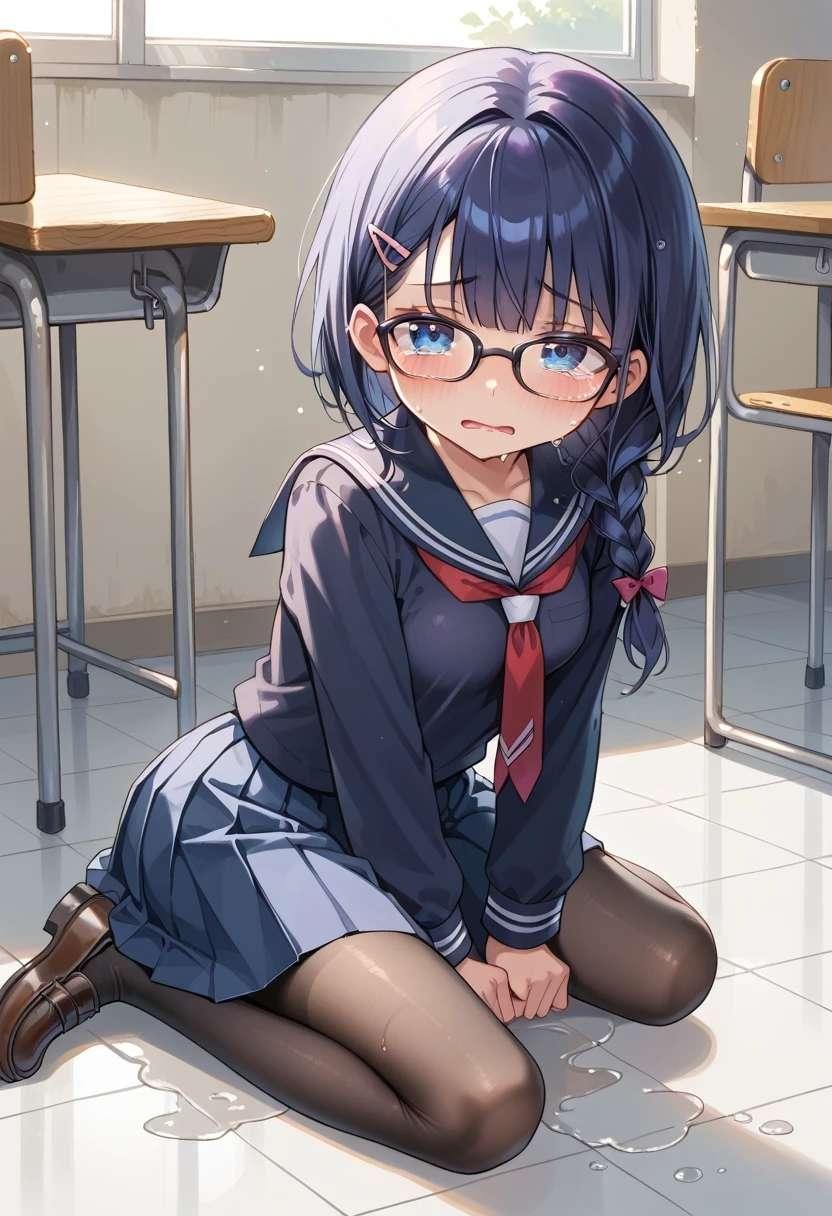 授業中ずっと我慢してて授業終了と同時にトイレに駆け込もうとするも間に合わず、へたり込んで泣き出してしまう