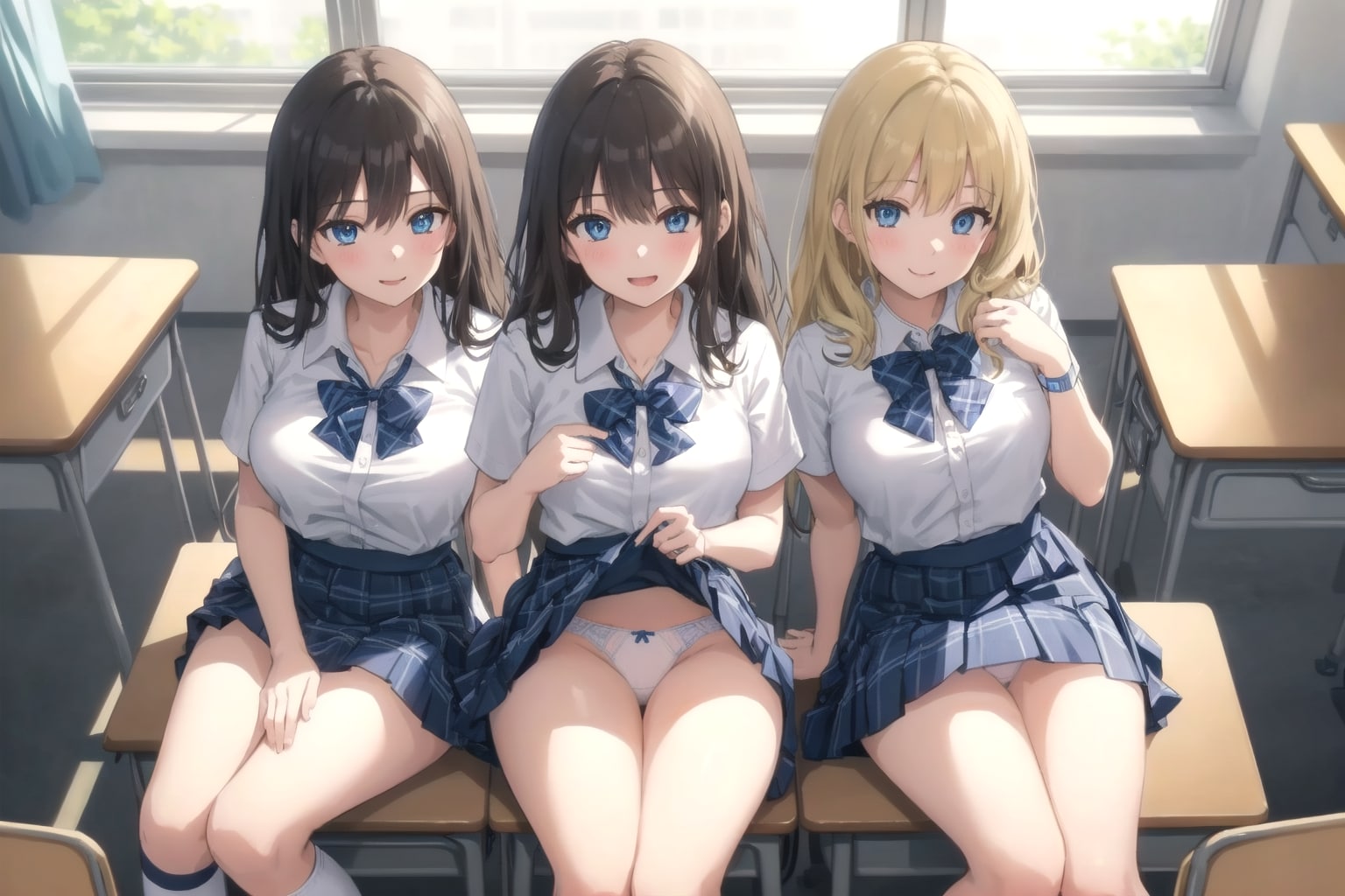 にやりと笑い、恐るべき速さで「チラ見せ」する彼女の親友たち。