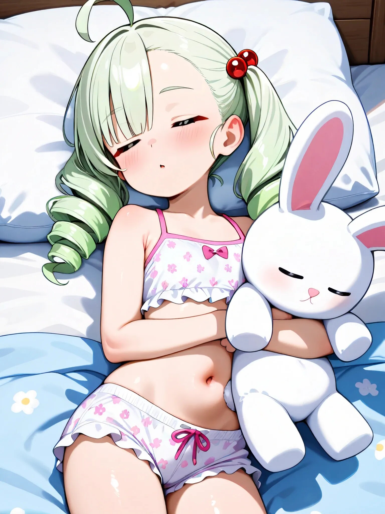 お気に入りのウサギのぬいぐるみを抱いて眠ってます。
