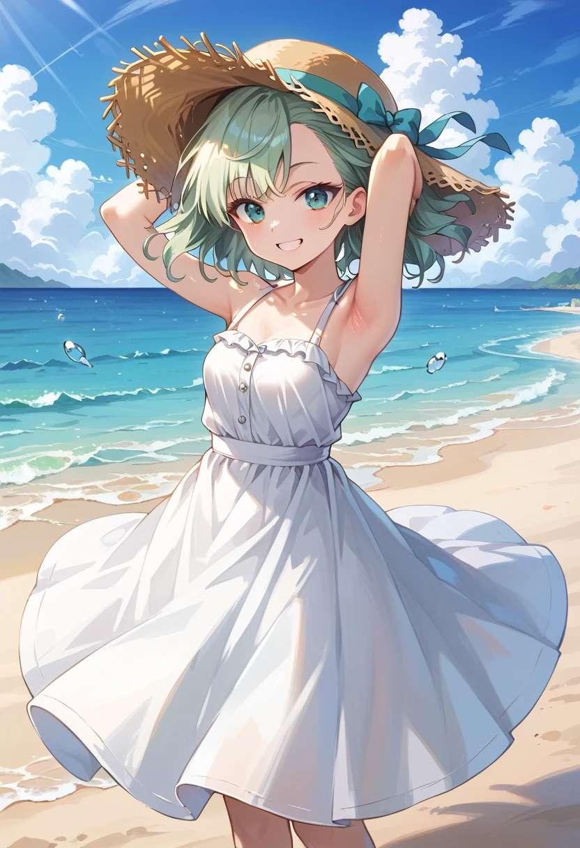 美少女と白いワンピースと麦わら帽子のトリプルコンボですね