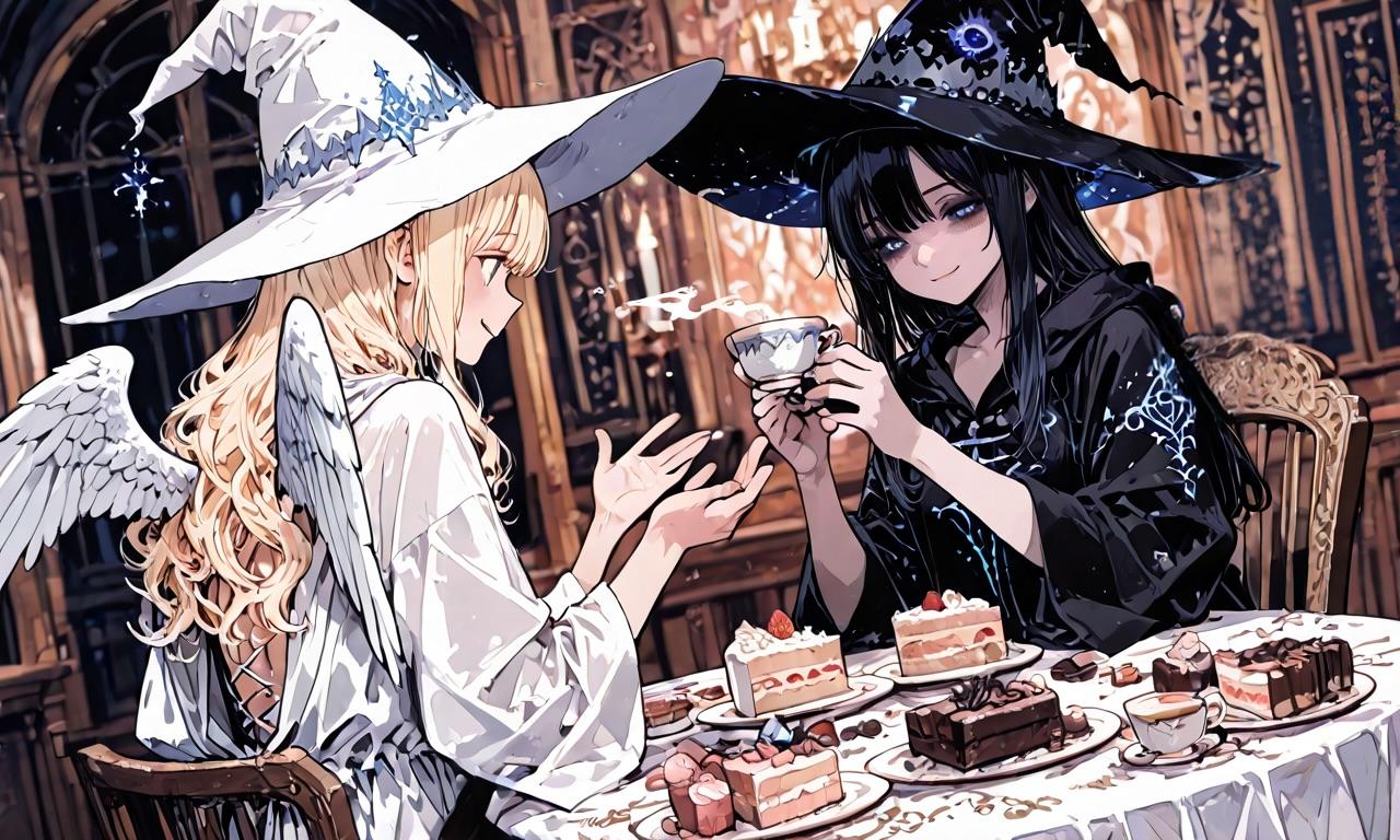 今日は町で、天使時代にバチバチにやり合っていた魔族のベルゼ姐さんとバッタリ再会し、今では同じ魔女同士、再会を祝ってお茶会をする事になりました。