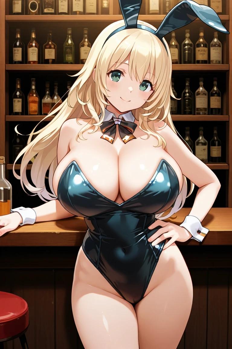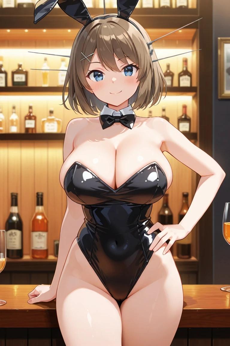 Barを背景にして、「艦隊これくしょん」の高尾型の艦娘たちにバニースーツを装着させました。