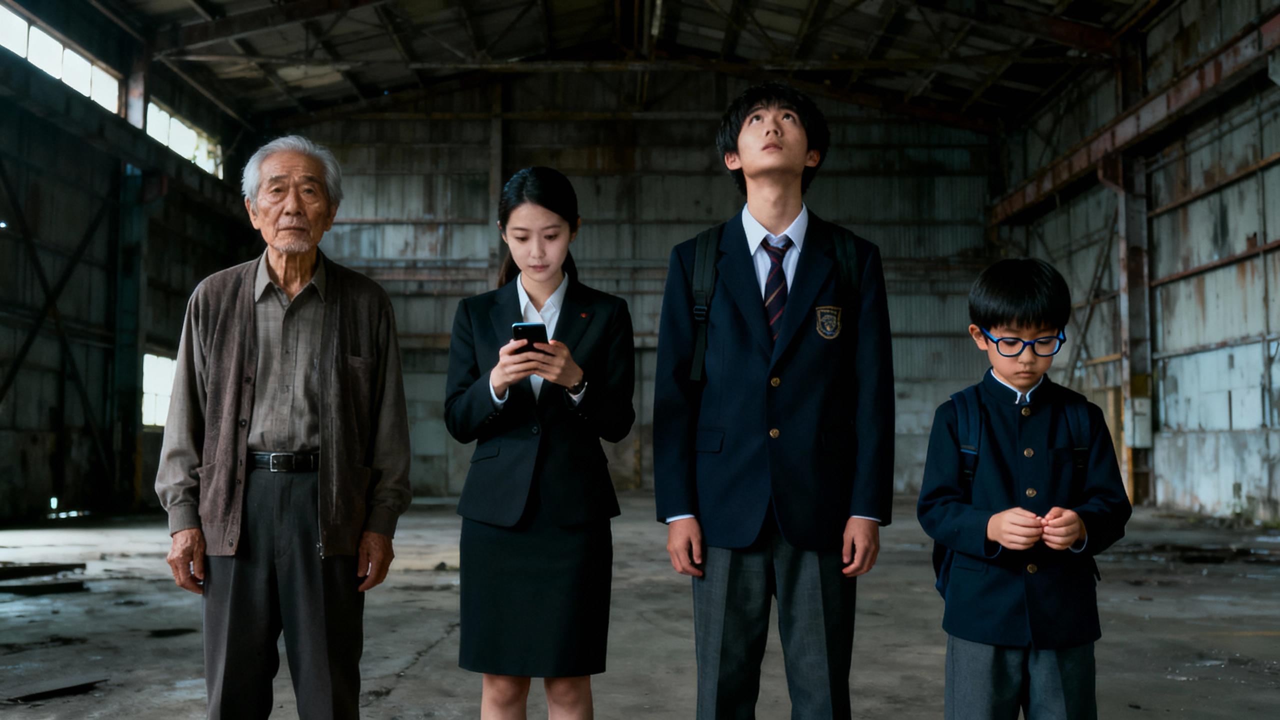 年齢や性別の異なる人々が横1列に並ぶと、何かの能力者に見える気がするんで、やってみました。