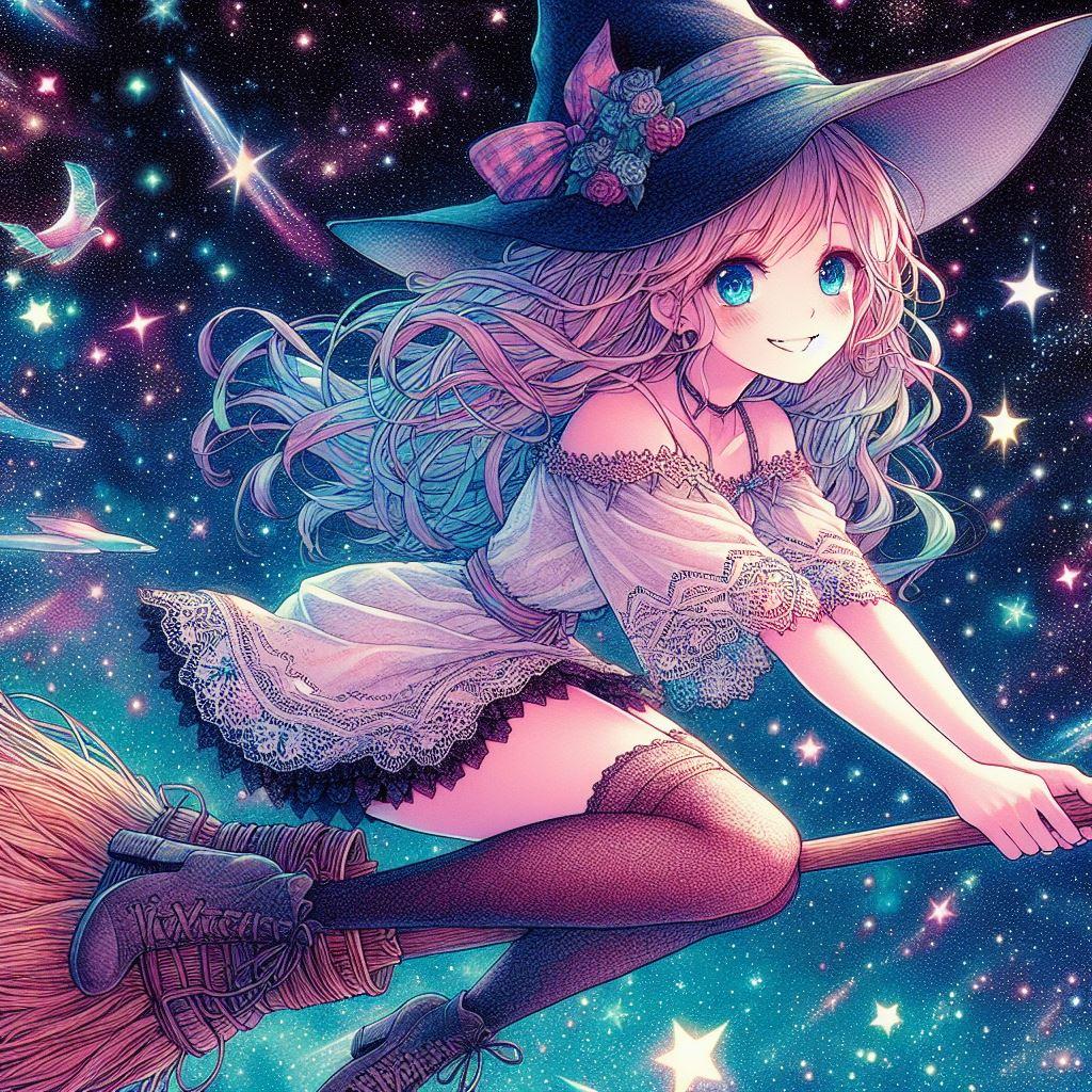 星空の魔女(色鉛筆風)