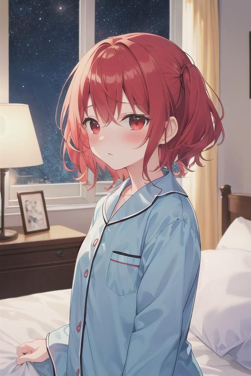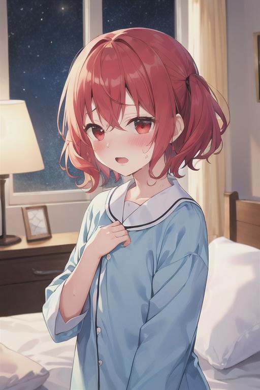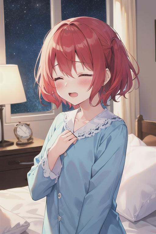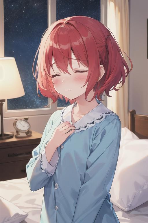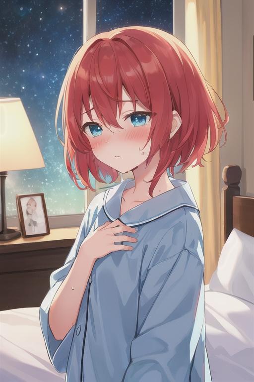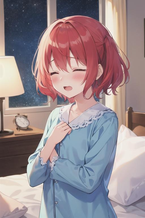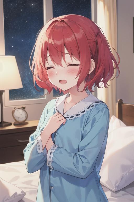 赤い髪に赤い頬、彼女は胸に手を当てて、