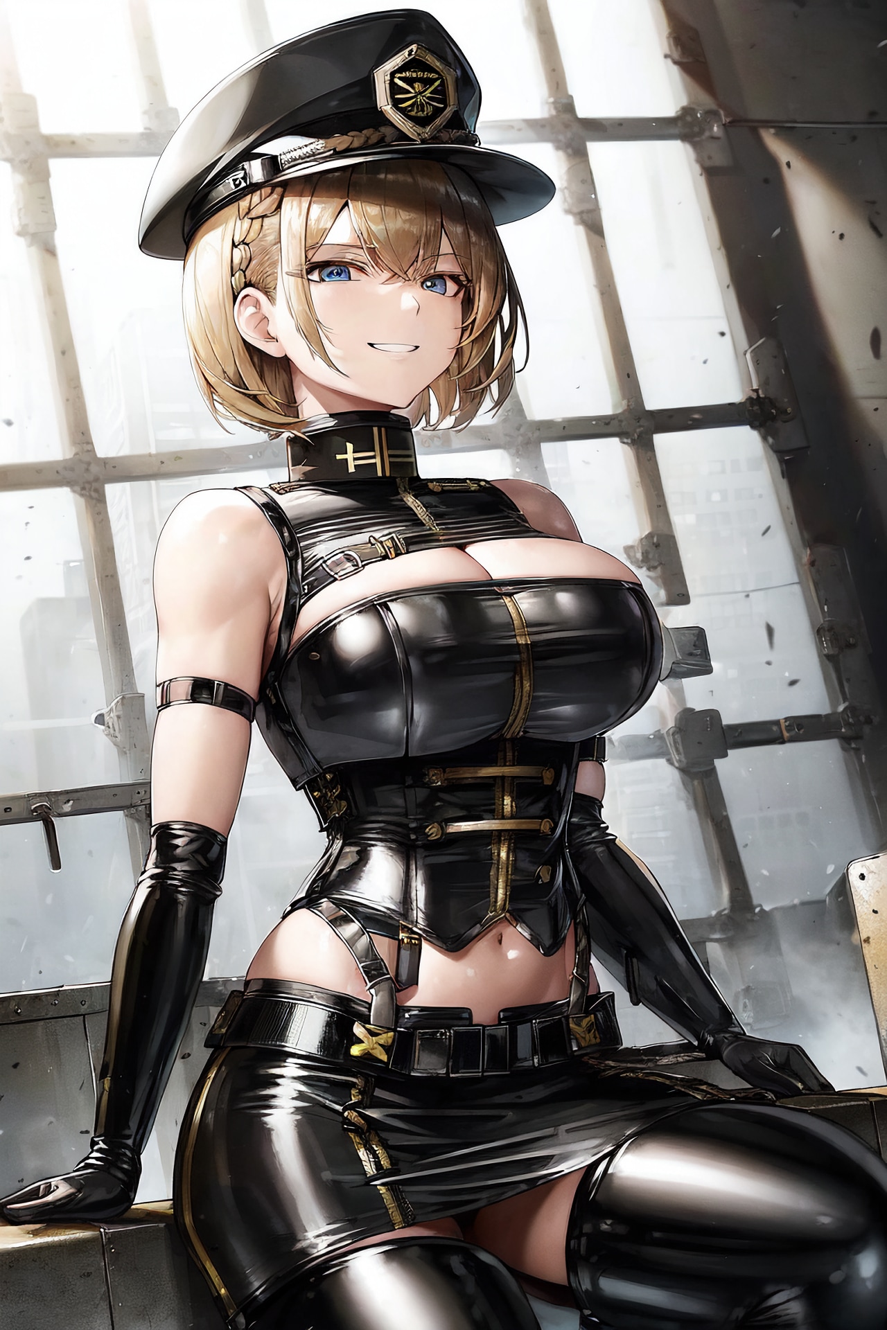 金髪ショートのドSな黒エナメルボンデージ女将校様に尋問されたい