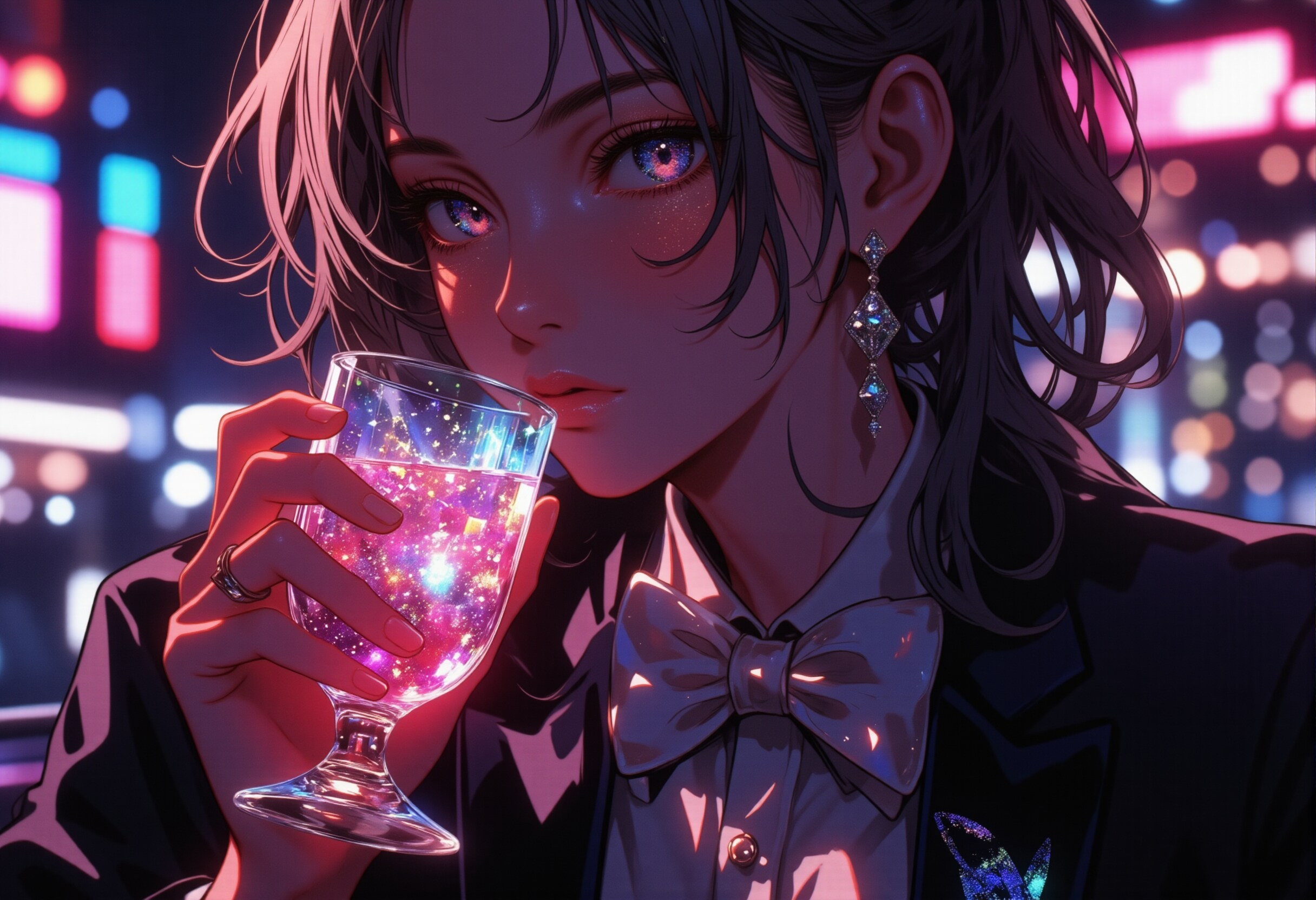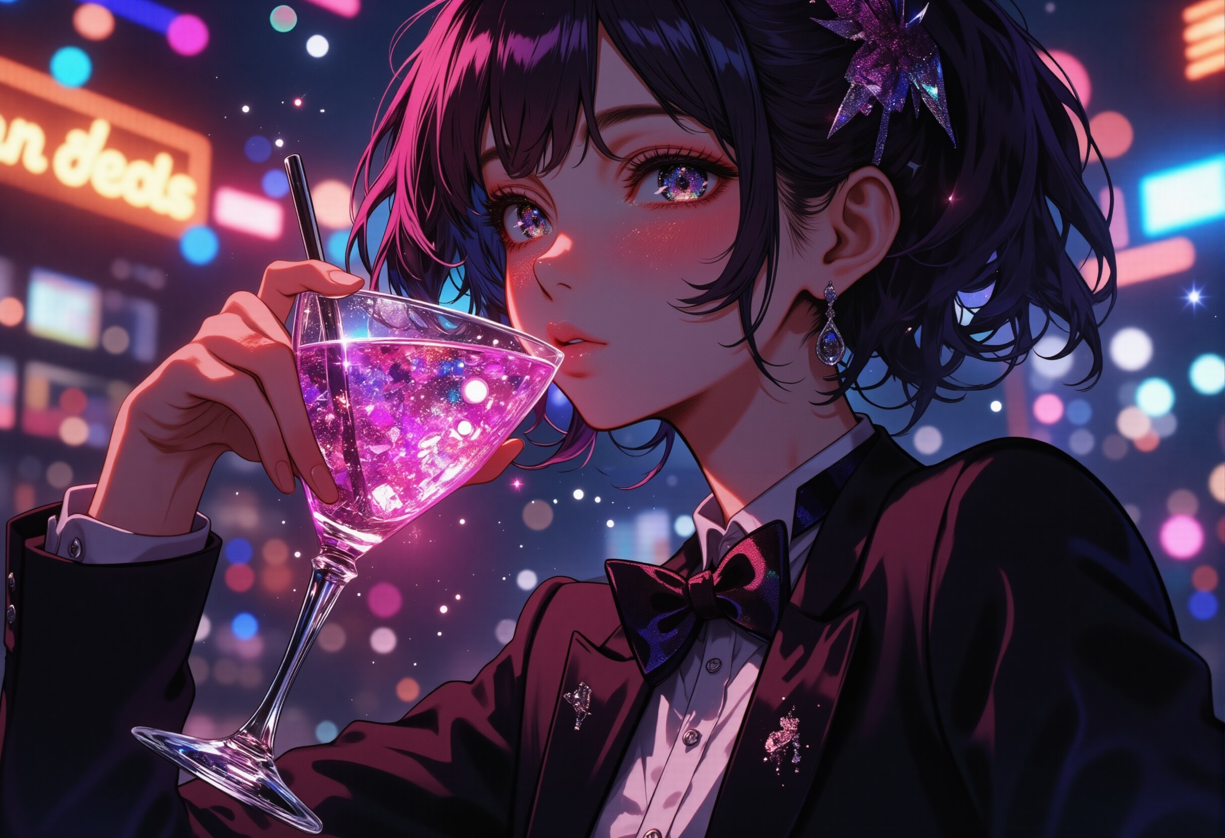 Steps: 30, Sampler: Euler, Schedule type: Simple, CFG scale: 1, Distilled CFG Scale: 3.5, Seed: 305750396, Size: 1216x832, Model hash: 2abace2516, Model: lyhAnimeFlux_v4Niji, Denoising strength: 0.4, ADetailer model: face_yolov8n.pt, ADetailer confidence: 0.3, ADetailer dilate erode: 4, ADetailer mask blur: 4, ADetailer denoising strength: 0.4, ADetailer inpaint only masked: True, ADetailer inpaint padding: 32, ADetailer version: 24.11.1, Hires upscale: 2, Hires steps: 10, Hires upscaler: 4x-UltraSharp, Lora hashes: "ral-crystalz: 04954de5fcad, ck-holographic-glitter-000015: 90aa4411c77a", Version: f2.0.1v1.10.1-previous-528-ge55cde9b, Diffusion in Low Bits: Automatic (fp16 LoRA), Module 1: ae, Module 2: clip_l, Module 3: t5xxl_fp16