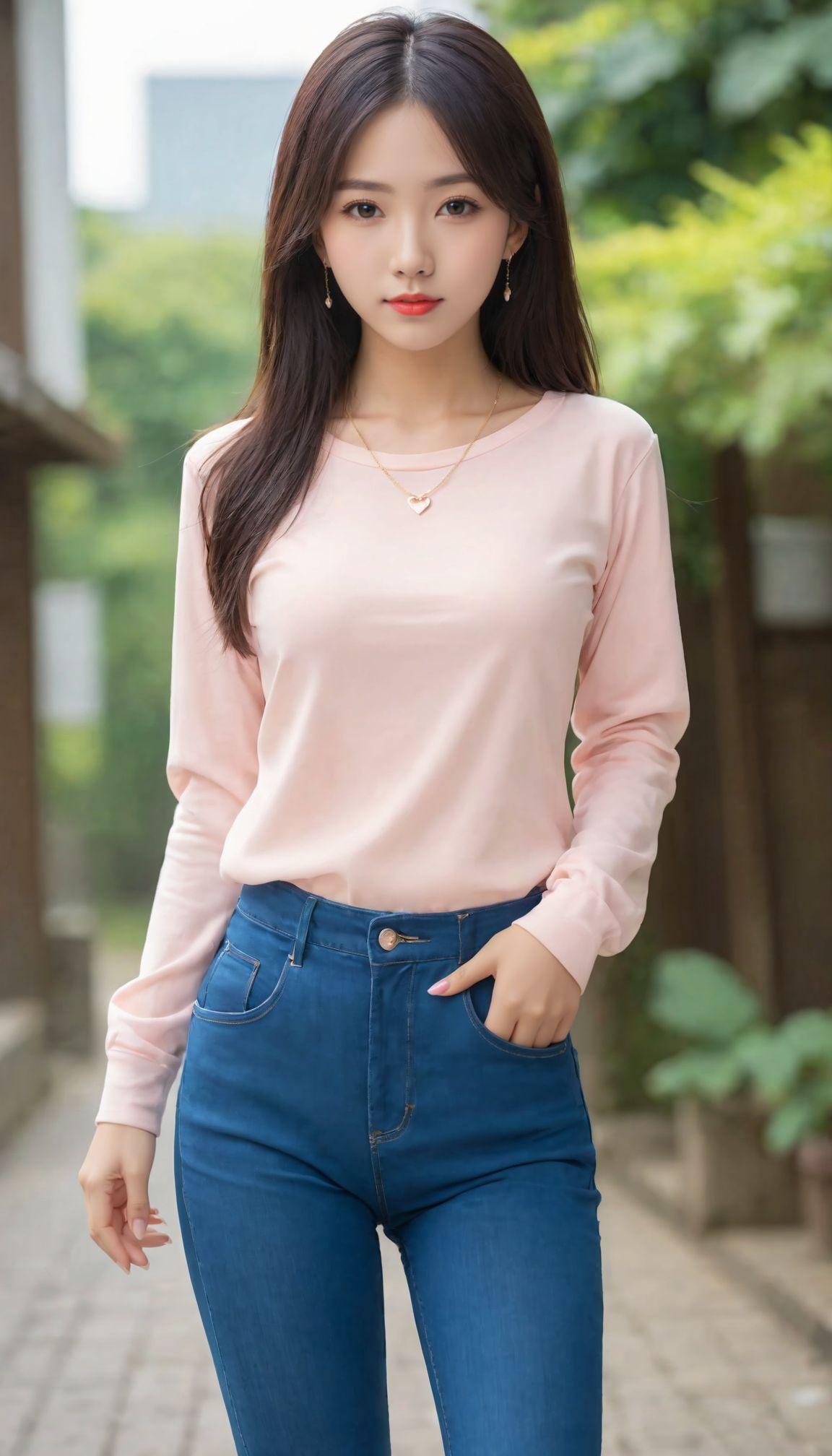 Tシャツにジーンズ姿のお姉さん風の18歳の美少女の全身画像を描いてみました。