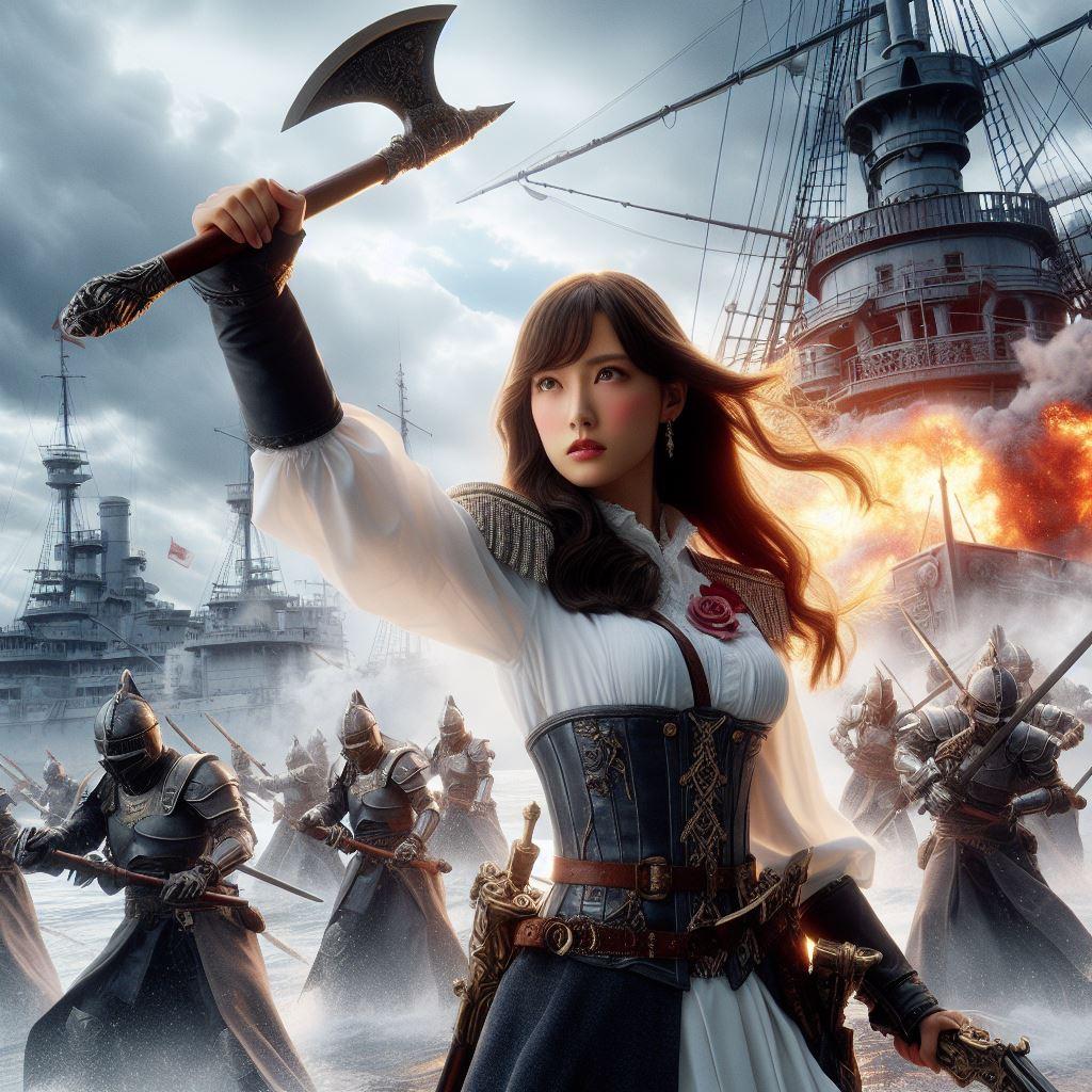 こちらも騎士と付いているから馬に乗せようと思ったのですが、歩兵連隊の揚陸兵設定(海兵隊みたいなものですかね)ということで、それらしく敵艦に乗り込んでもらいました。