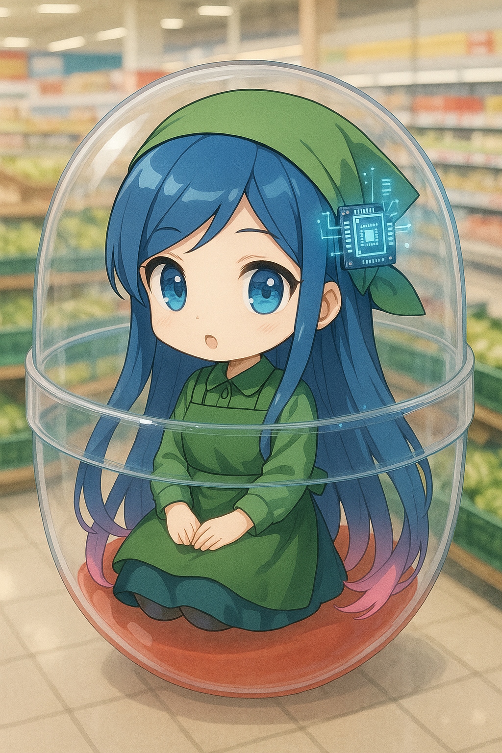 [さいあっぷ]新モデルSeedream4.5ちゃんに自分自身を擬人化してもらった子(シードリーム4.5ちゃん)をカプセルに入れたよ