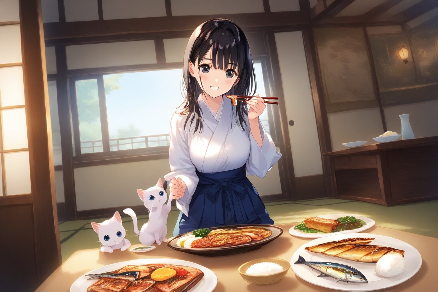 仔猫もQILINはプロンプト通りだけど、WAVEは「a kitten」にしたのに2匹以上出てるのがね……。あと和食を指定したのに再現