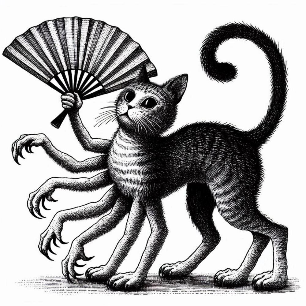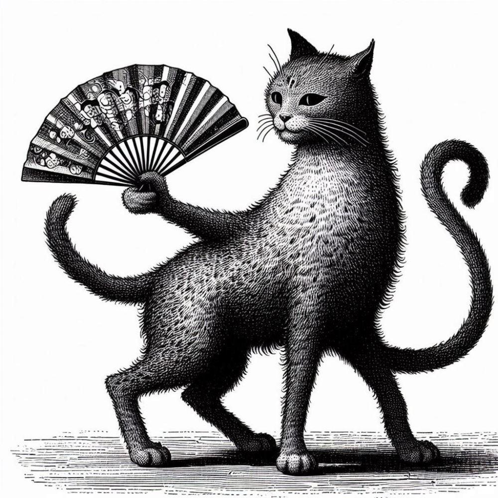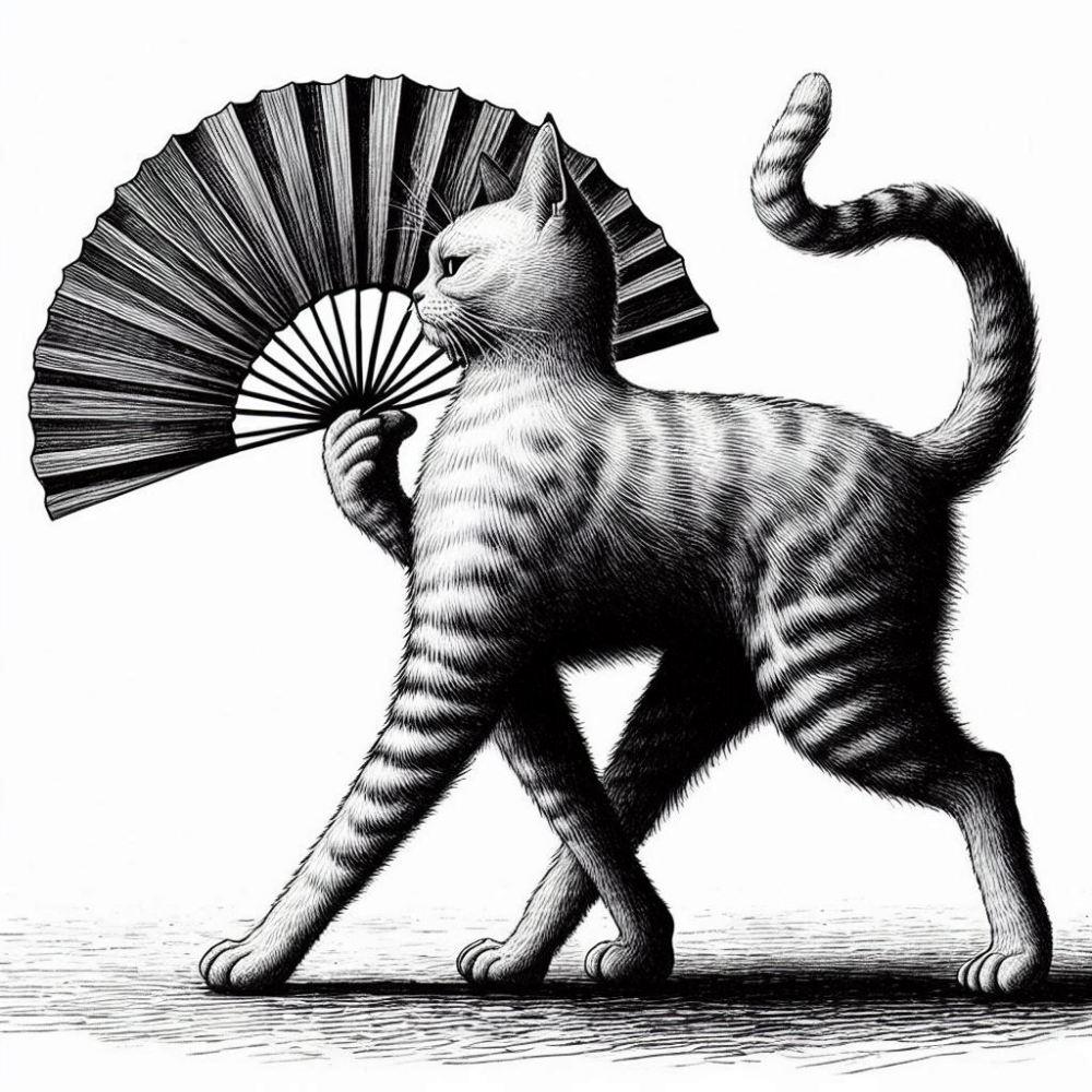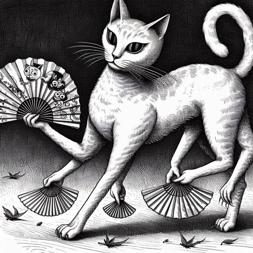 うちわ焼き魚ふんどしコスプレ人妻&白黒猫?