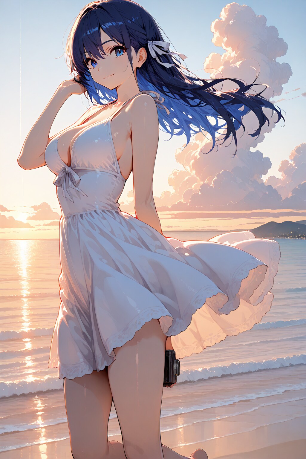 夕陽は海を黄金色に染め、空は桃色と水色のグラデーションで満たされていた。