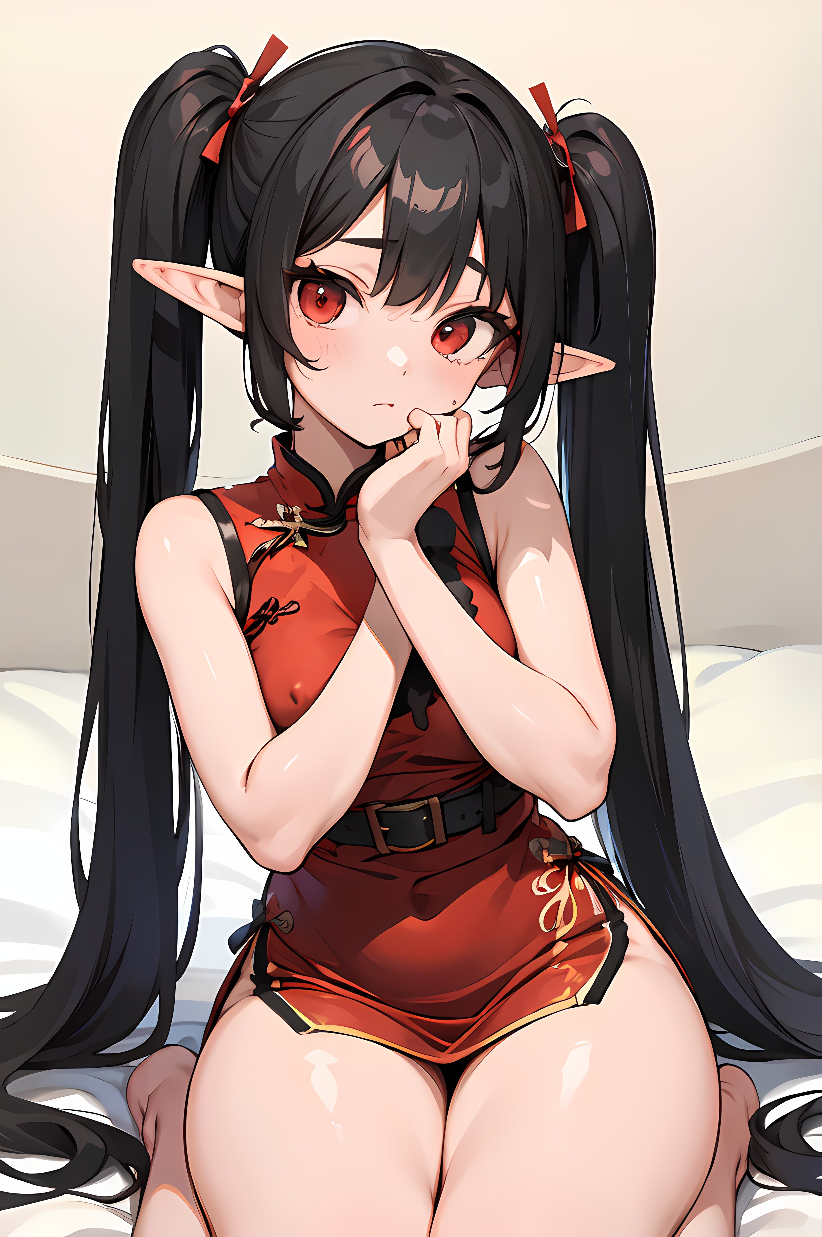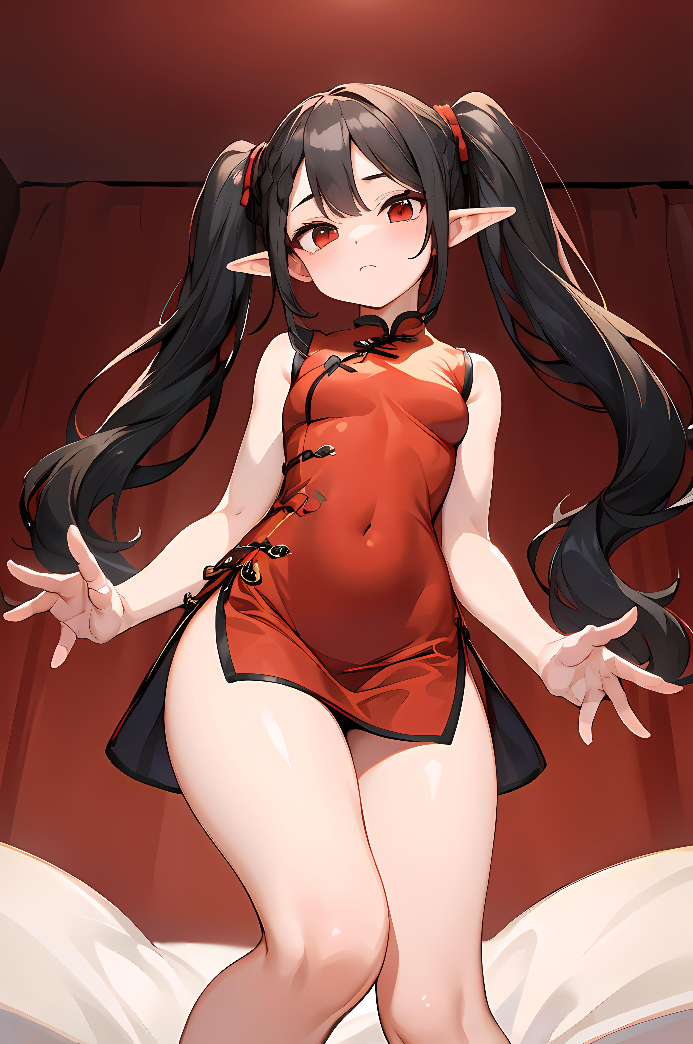 ついんてえるふっ娘♪ 赤いチャイナ服 微乳ver.♡ 2 (4枚)