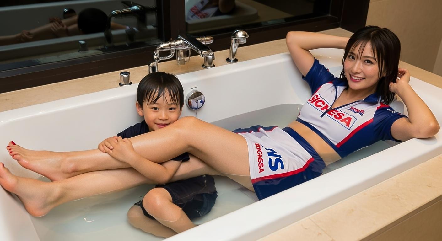 👧美咲『悠翔が抱き着てきてバランス崩して、二人でお風呂の中に落ちちゃったの』