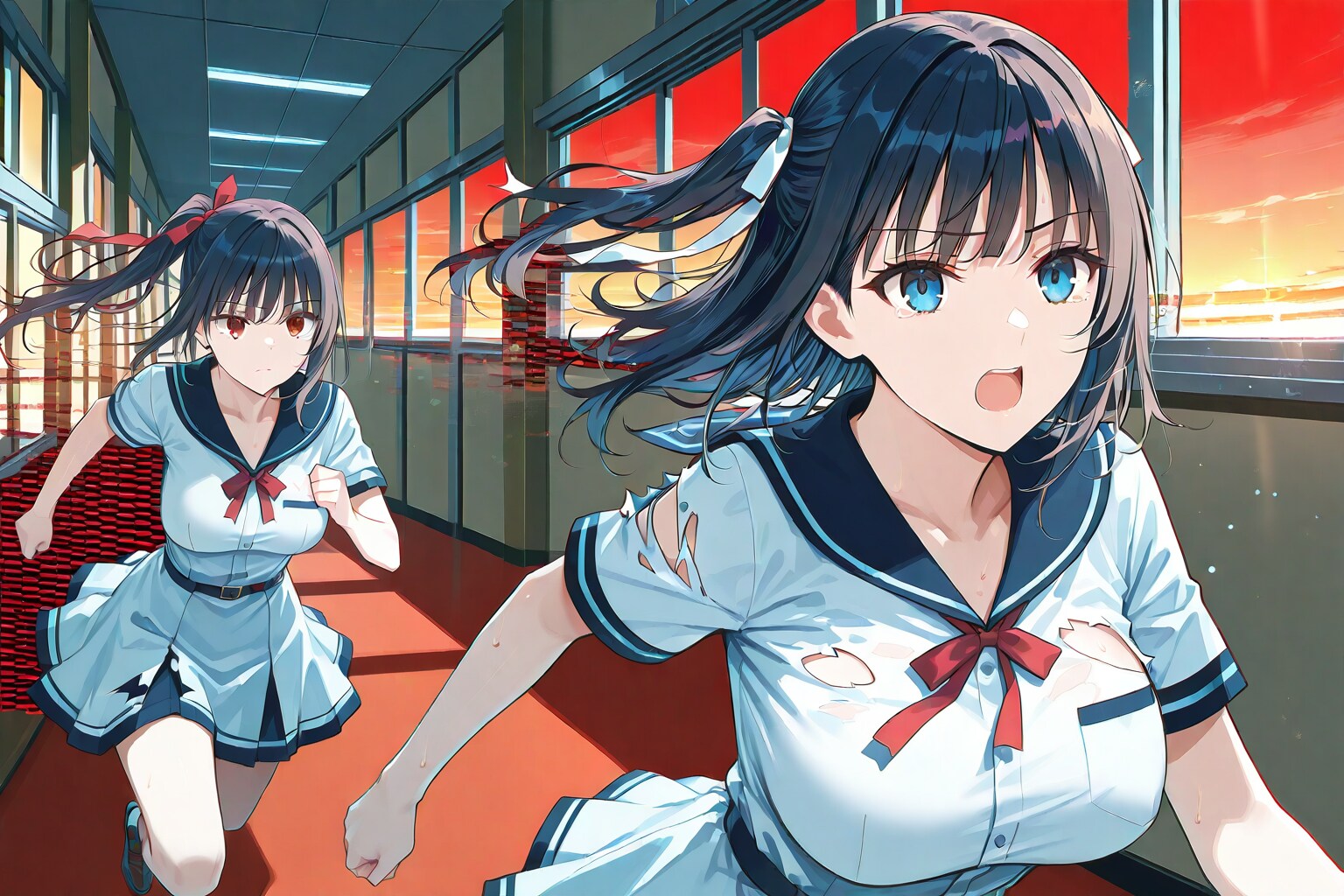GPU学園のコアシステムルームは、赤い警告光に飲み込まれていた。アラームがけたたましく鳴り、空間が歪む。15年前、突如発生した大規模エラー災害。コアシステムが暴走し、膨大な演算データが無秩序に溢れ出した。データストリームは暴風のように吹き荒れ、触れた者をデータ断片化――存在の抹消へと導いた。