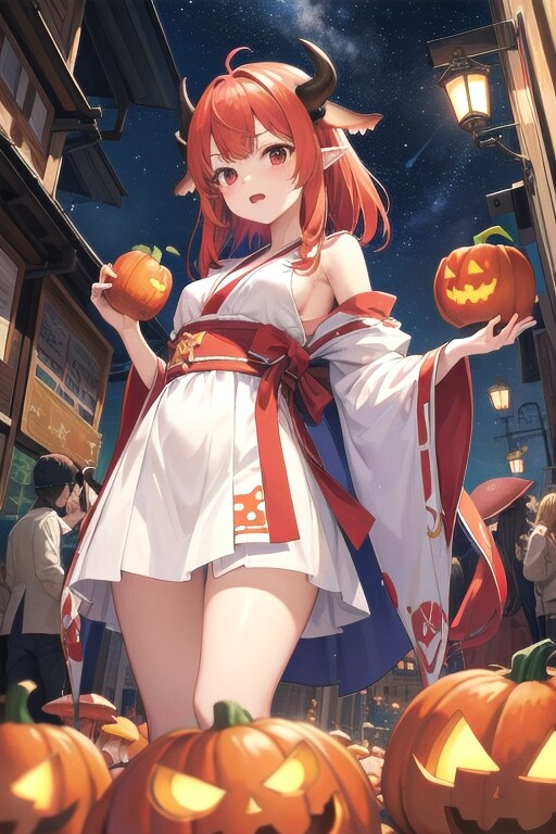 私のはハロウィンコスじゃないんだけど…角は自前だし、巫女は仕事なんだけど…Happy Halloween