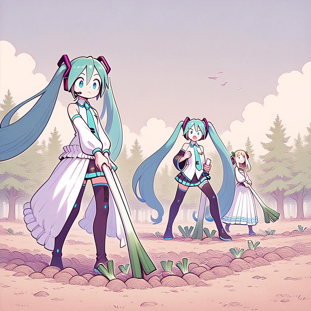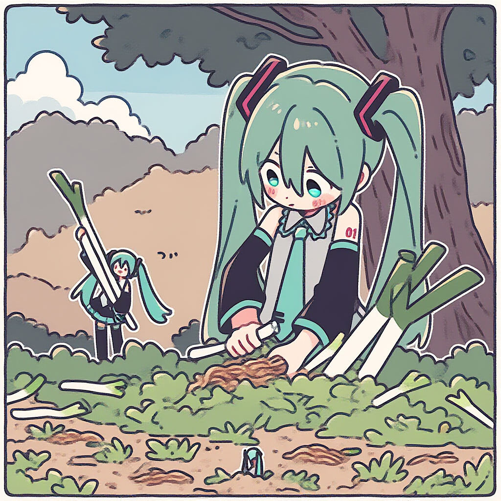 ボカロ 初音ミク ネギの収穫風景?