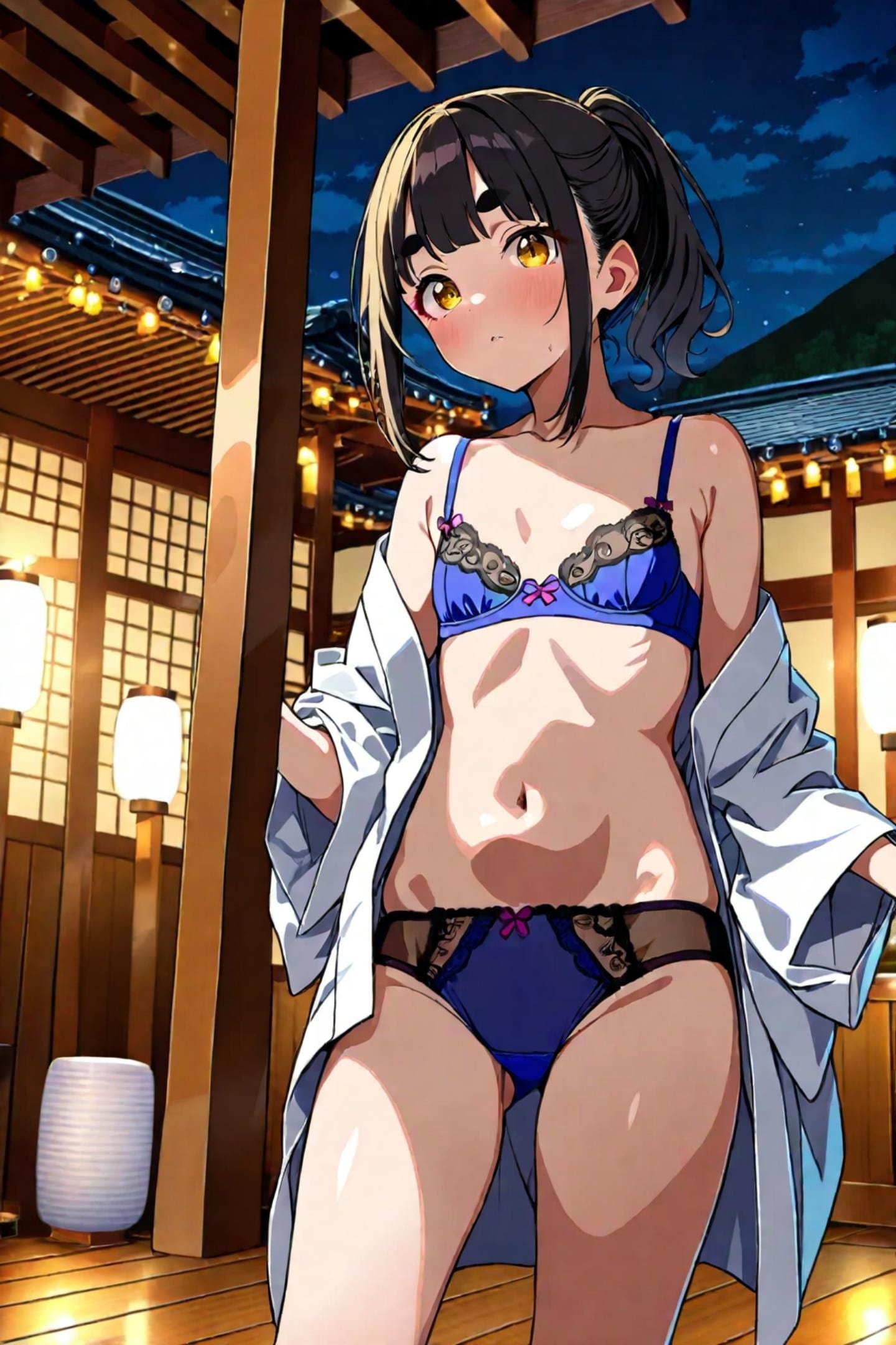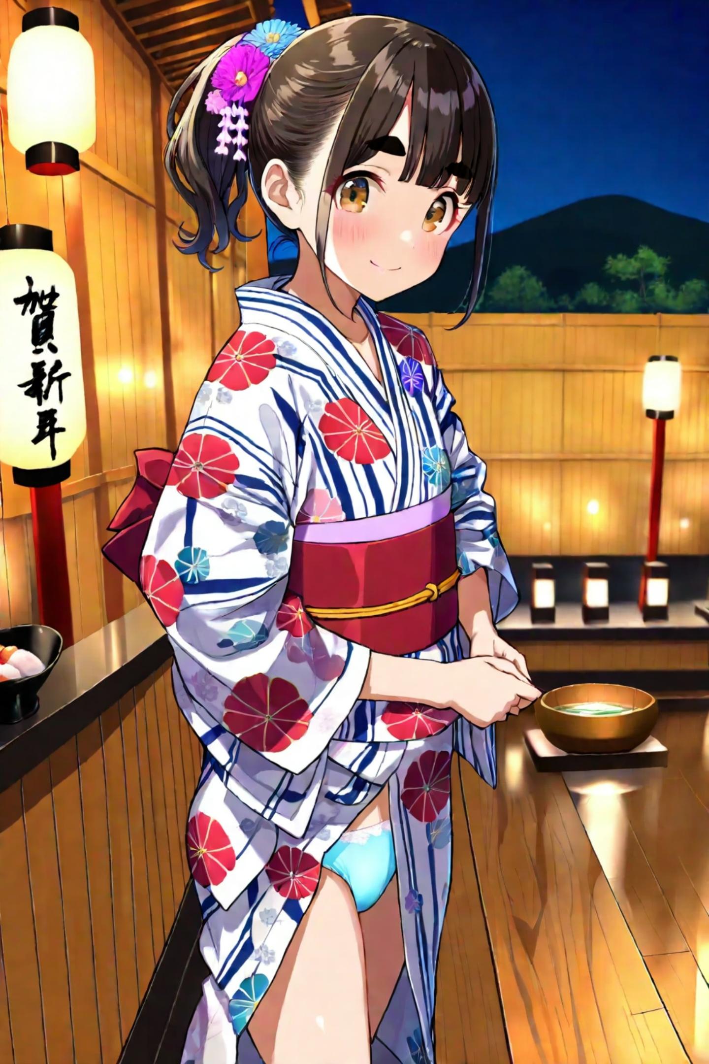 太陽のような笑みを浮かべるみき子、着物を脱ぎ、パンティーとブラジャーを脱ぐと、父、キワミの遺伝子か母、まゆ子の遺伝子が合わさって立派に生えた毛が垣間見れる。乙女の洞窟に生い茂るジャングル…胸の大きさに対して、毛の方に発育がいったのには、さすが、まゆ子の娘といったところだろう。