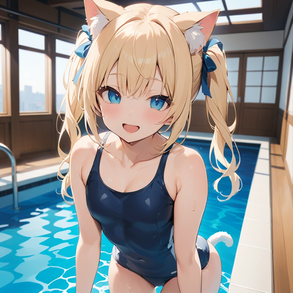 こるり「温水プール、キモチイイ」まや「何故スク水?」こるり「気分」