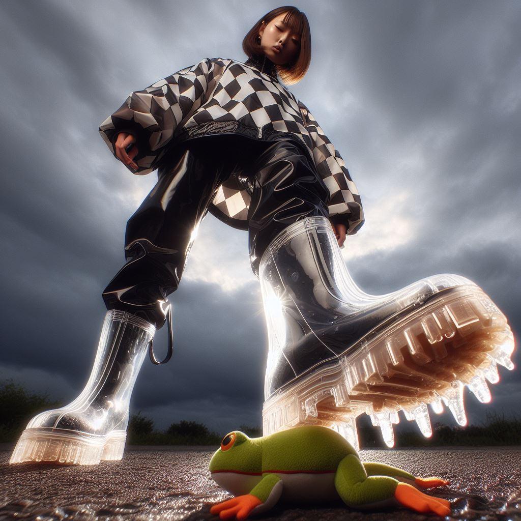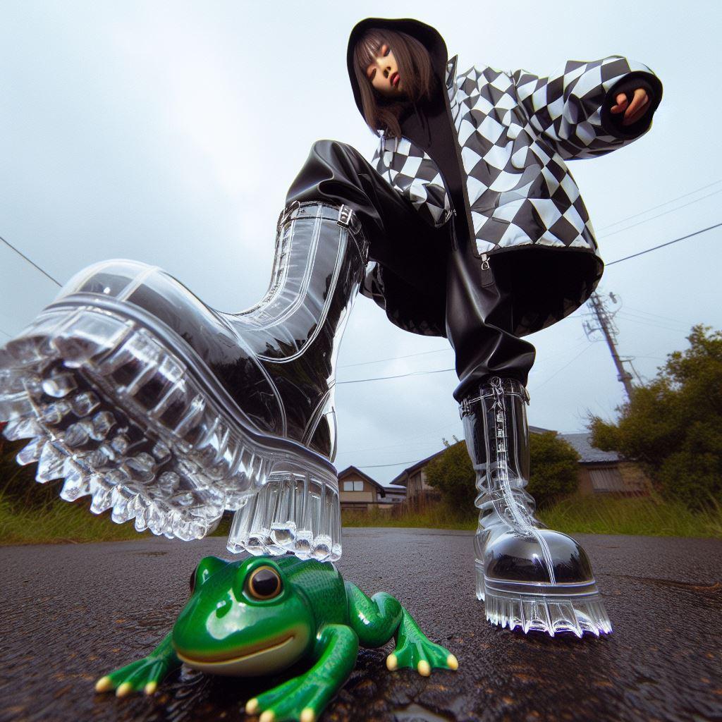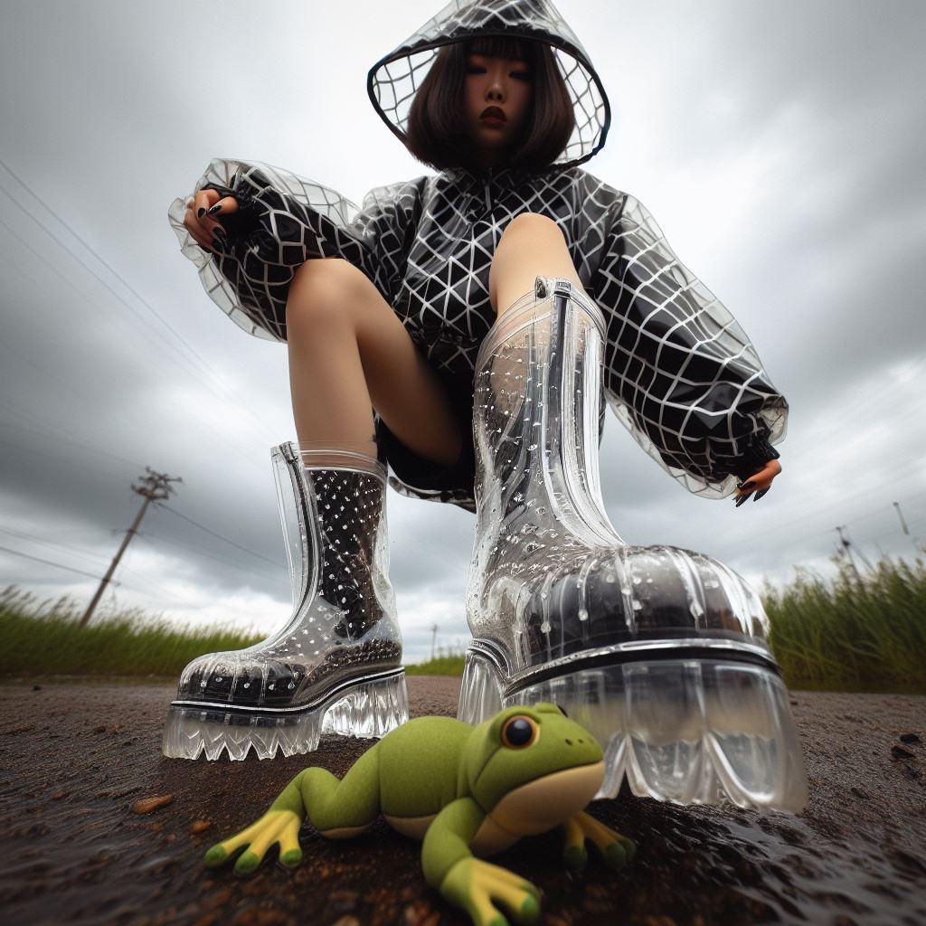 長靴と言っただけで勝手にレインコート風になったり、濡れた感じになるのが面白いと思いました。