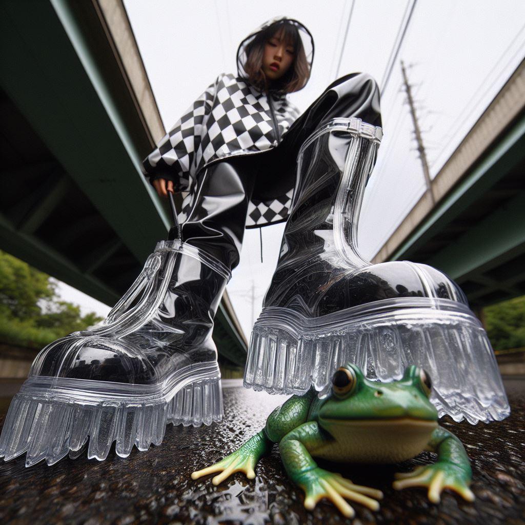 透明長靴は靴底がおかしな感じになったりして楽しいですね。