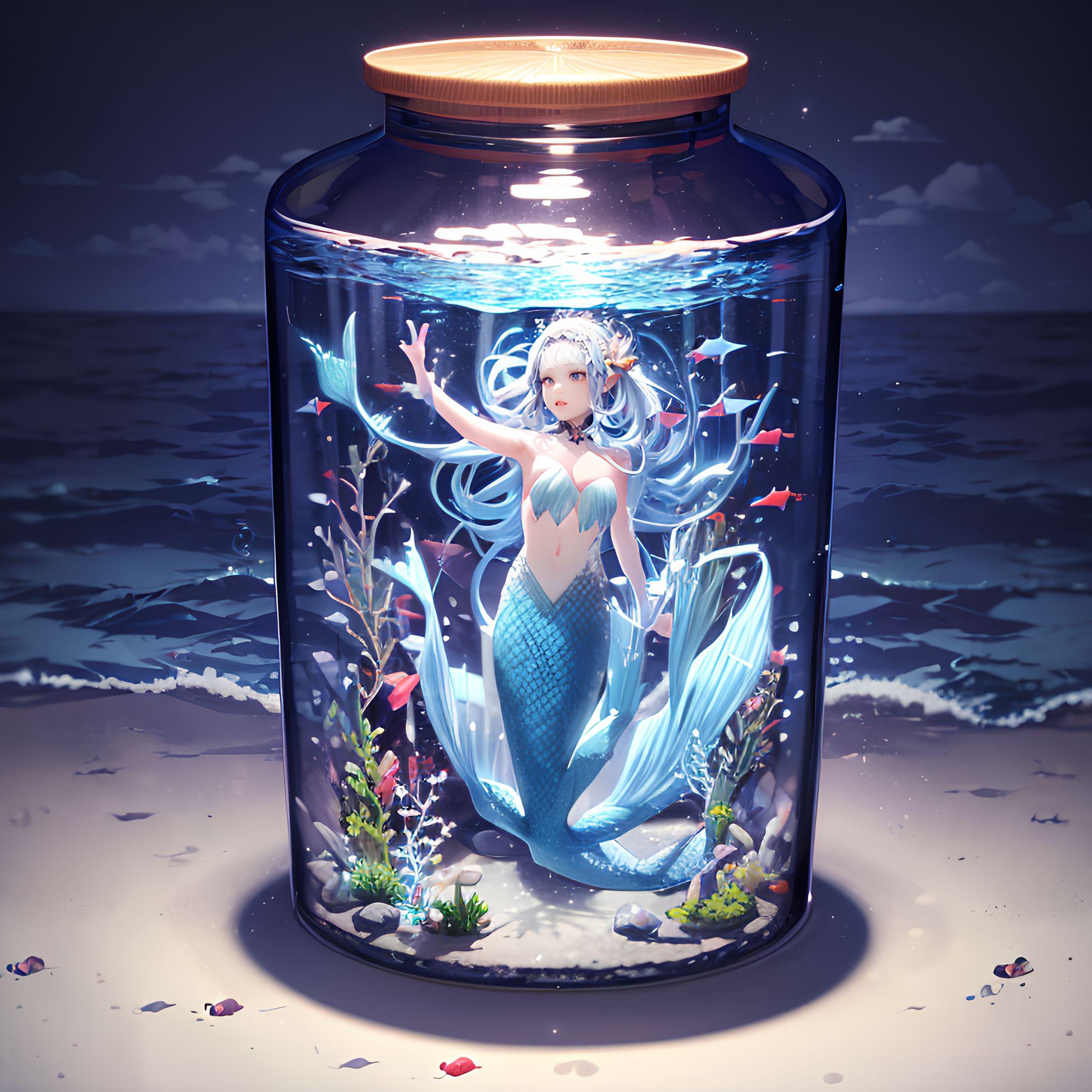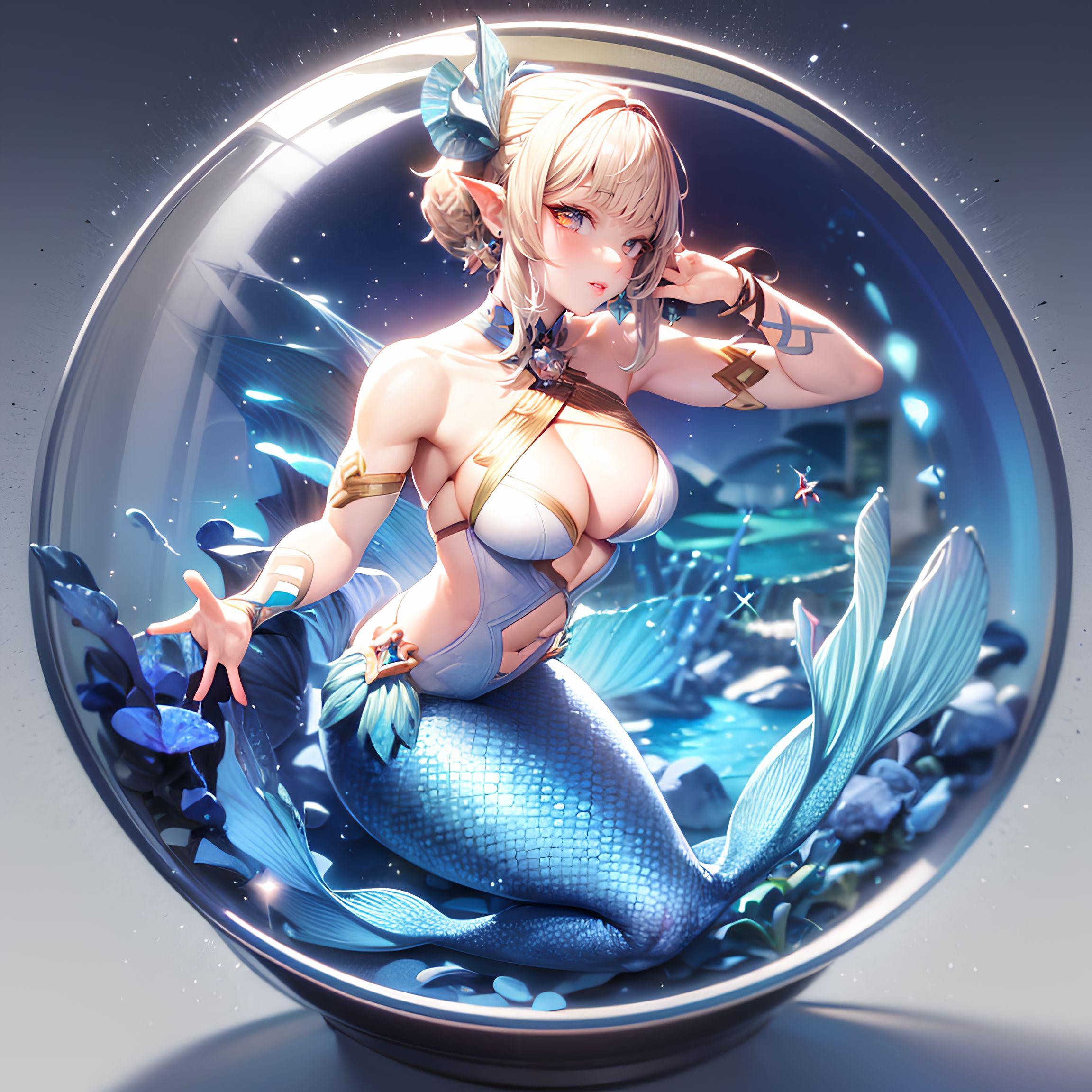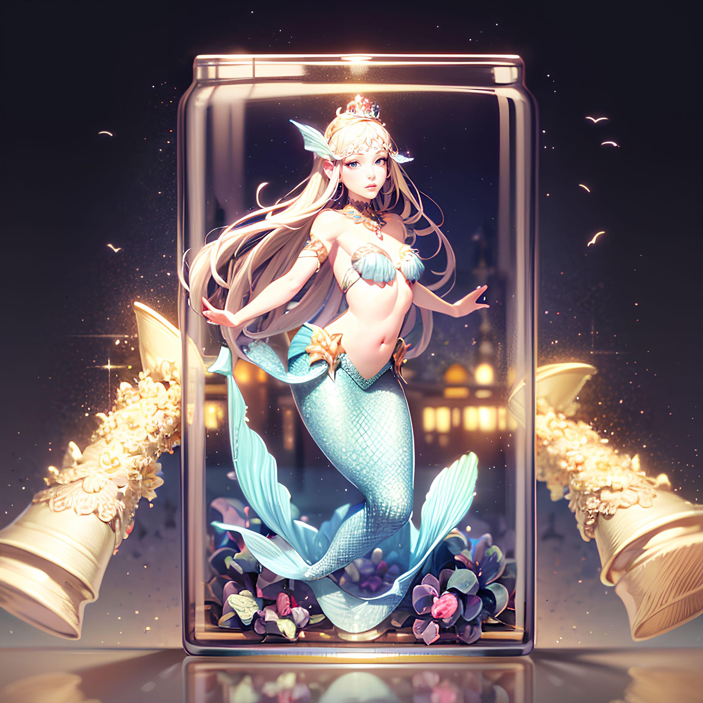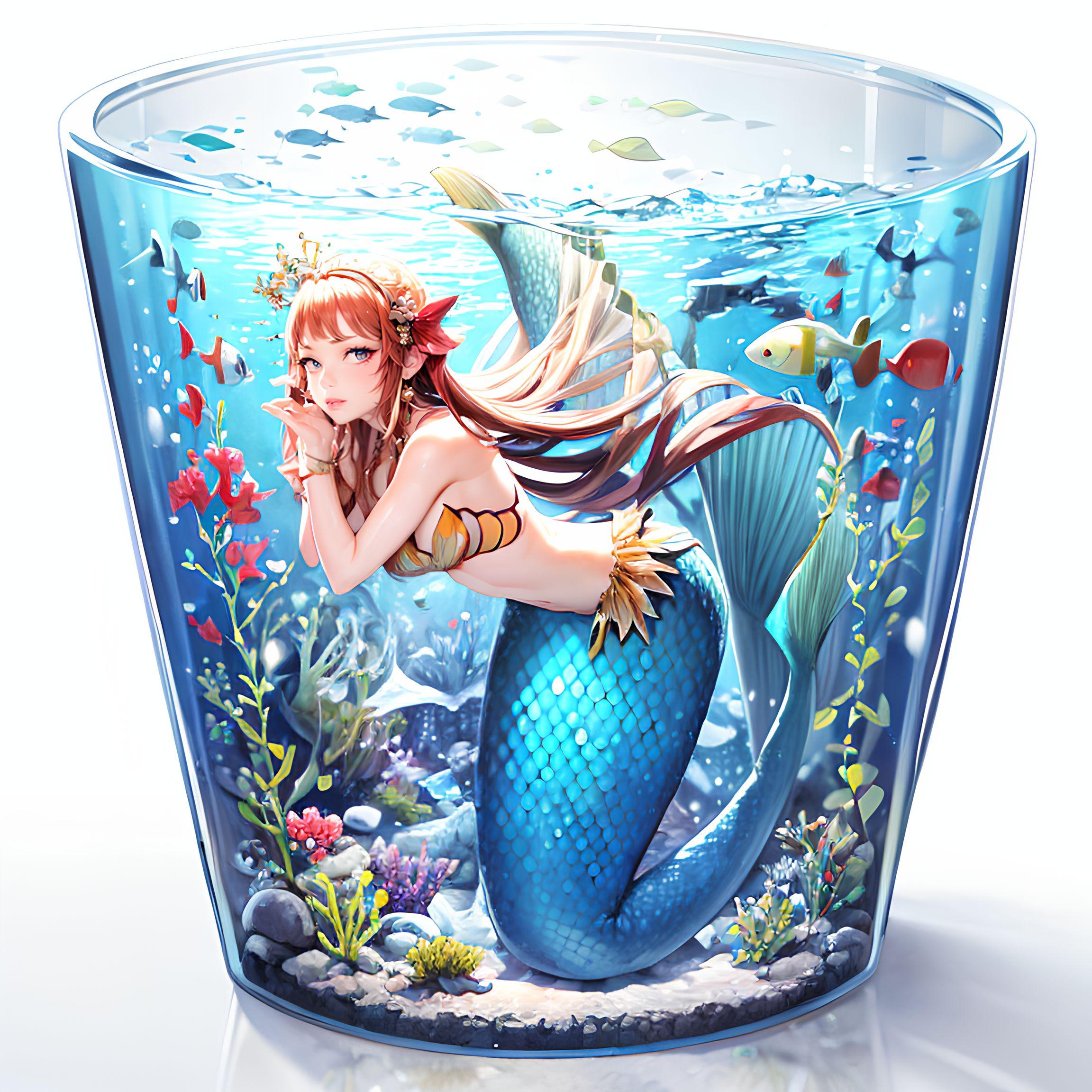 ファンタジーの海底に住む人魚姫とアクアリウムを融合した神秘的なアート