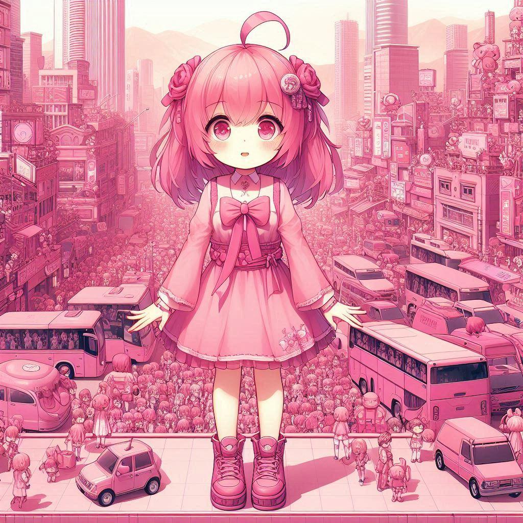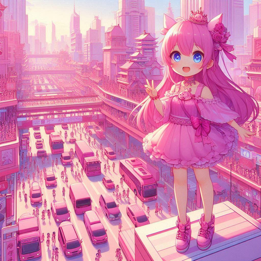 [4枚] 桃色世界にたたずむ夢かわ桃色少女たち