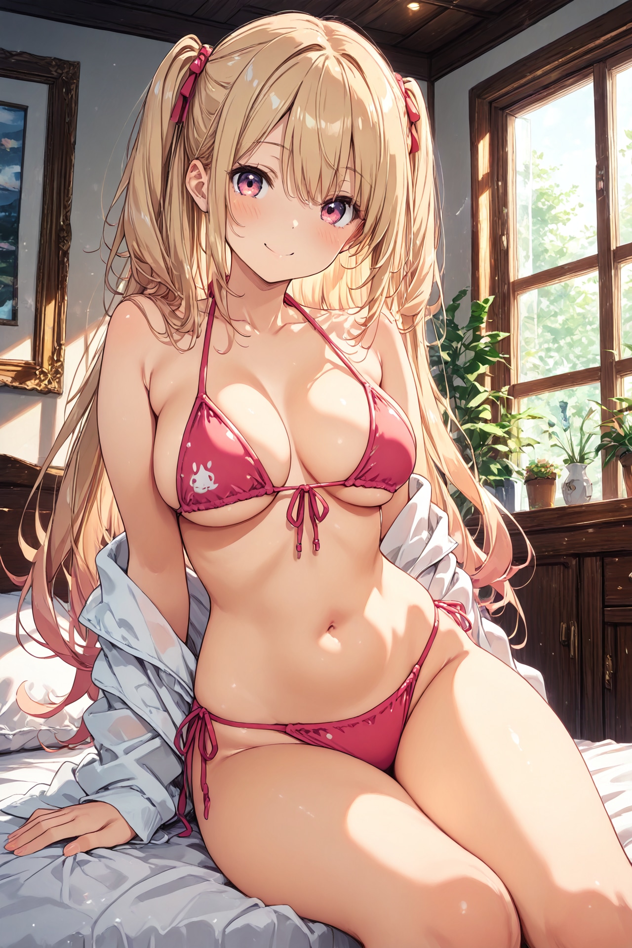 20251105【4枚】ピンクのビキニとスタジャン風カーディガンの女性