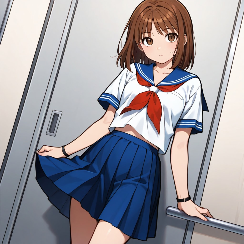 20251114【5枚】紺色のセーラー服とマスクの女性