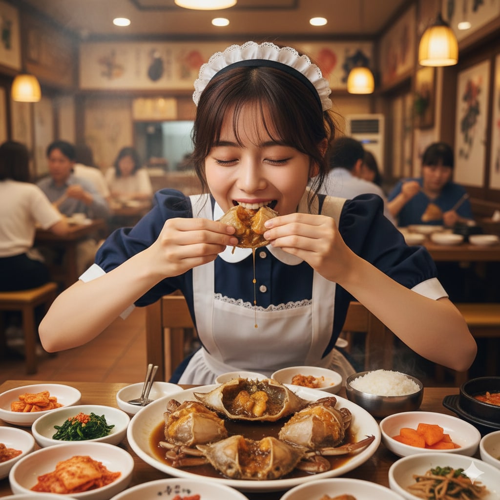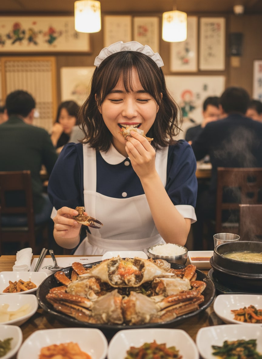 カンジャンケジャンに舌鼓を打つメイド23号