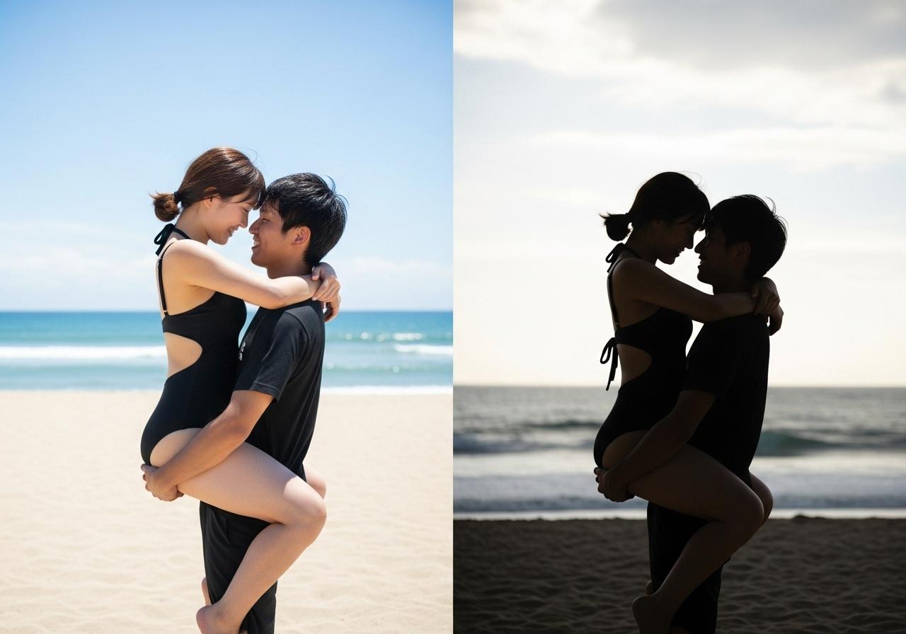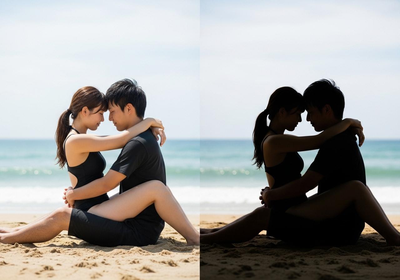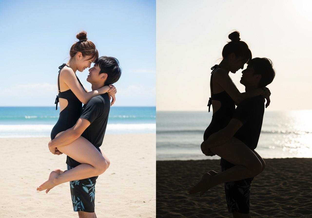 仲良しカップルのシルエットです。