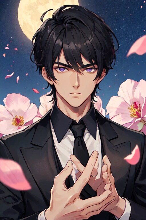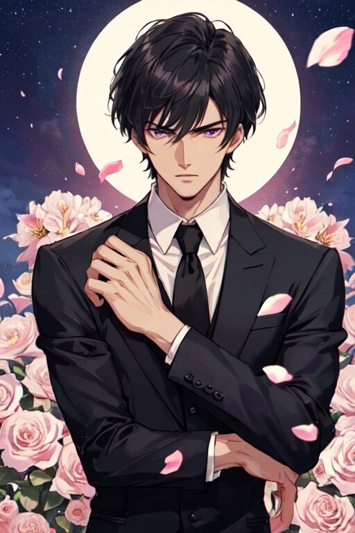 では、花びらと黒髪短髪男性をご覧下さいー。